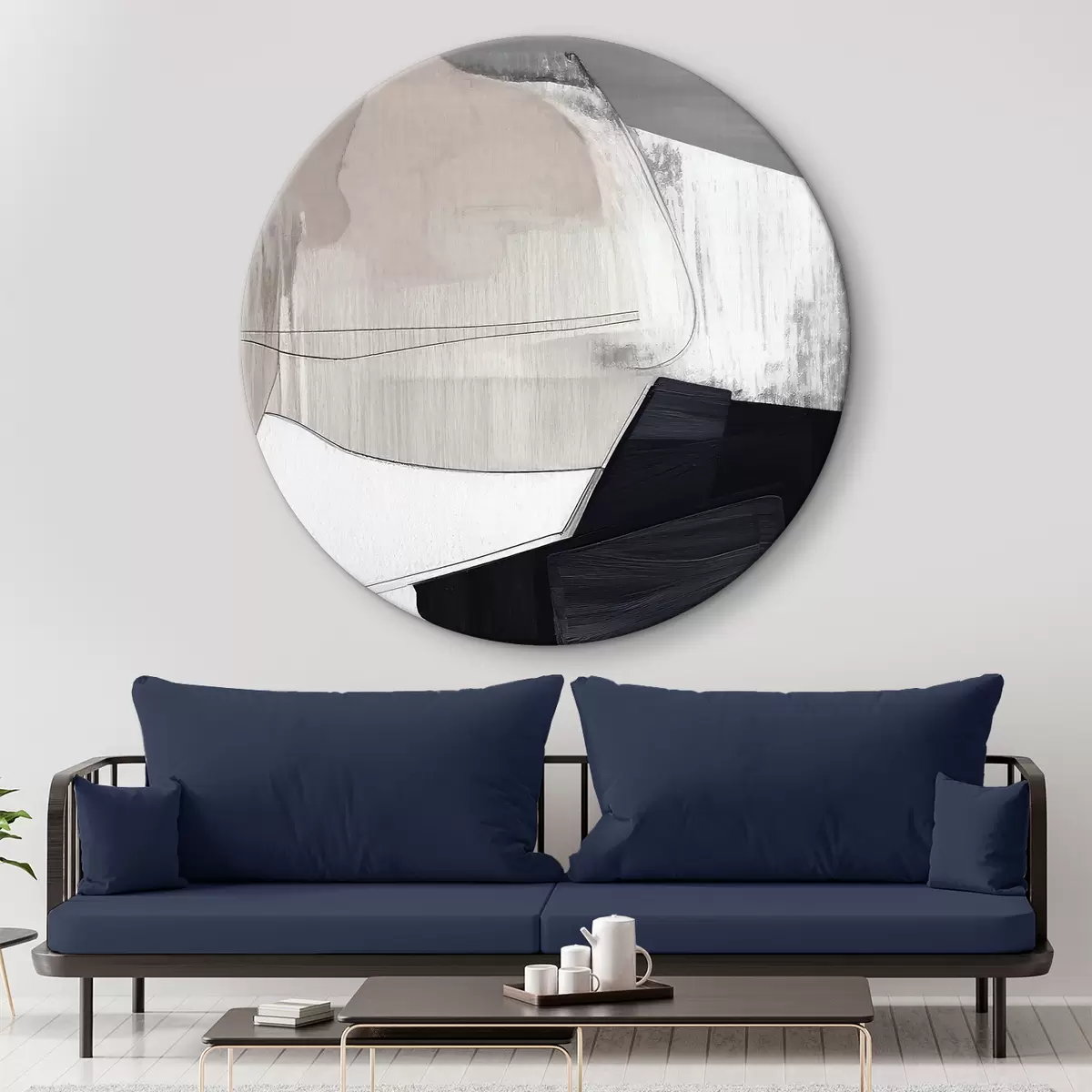 Ronde schilderijen Abstracte kunst in zwart-wit tinten Nr r36039
