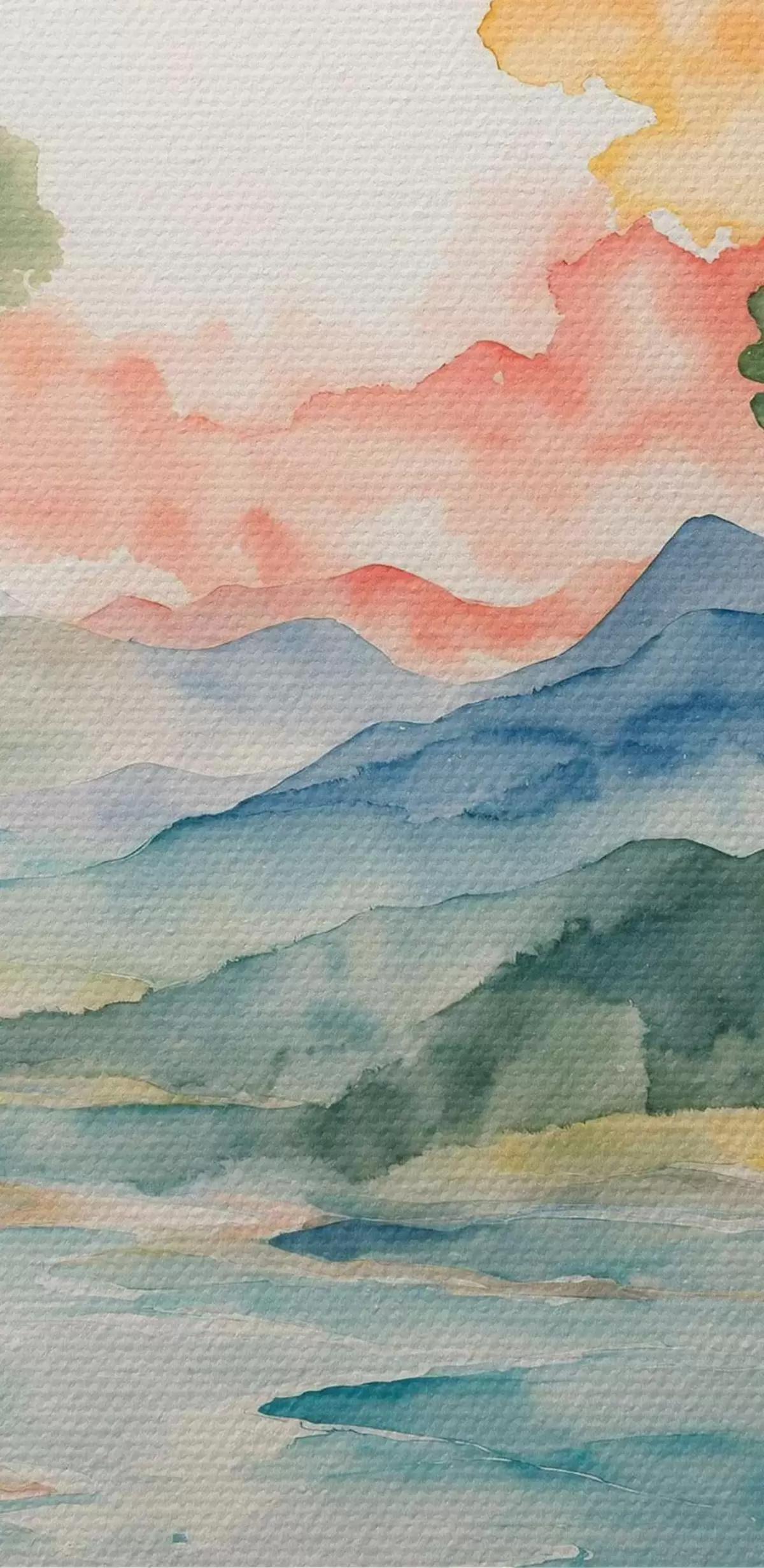 Ronde schilderijen Rivier en bomen in aquarel Nr r36054