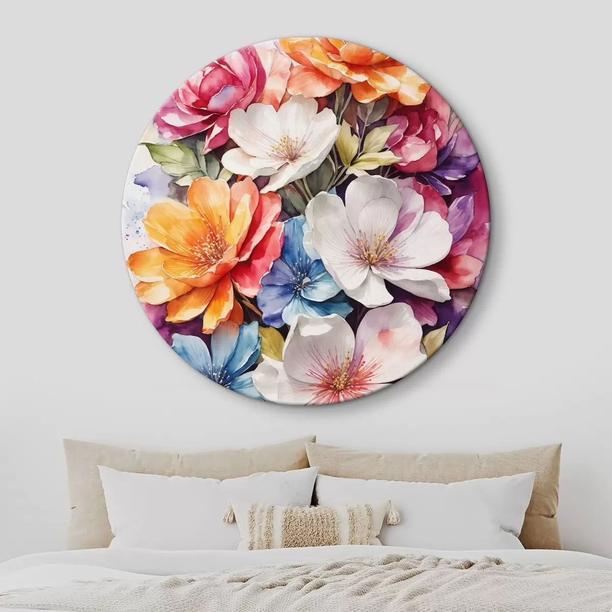 Ronde schilderijen Aquarelpatroon in witte, blauwe en gele kleuren r36123