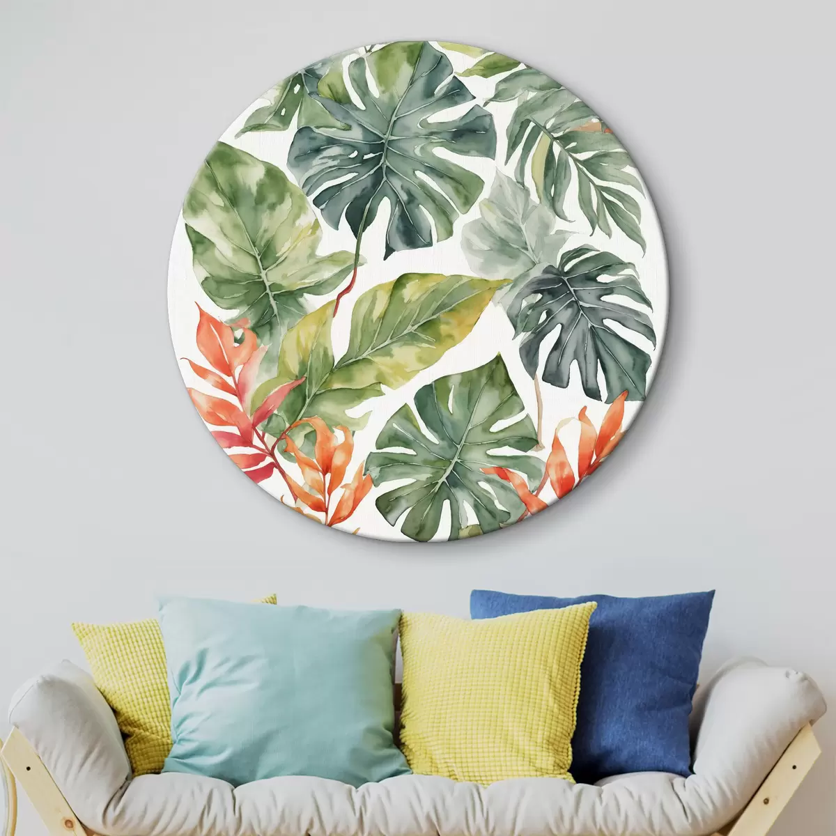 Ronde schilderijen Tropische kleurrijke bladeren Nr r36131