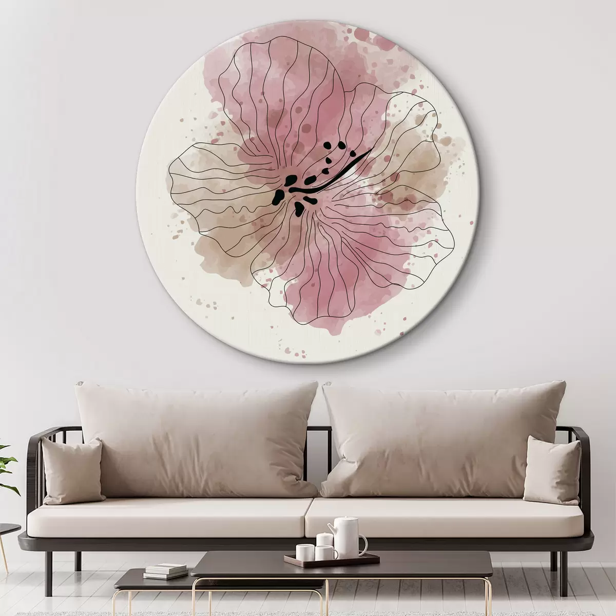 Ronde schilderijen Roze blos in aquarel Nr r36136