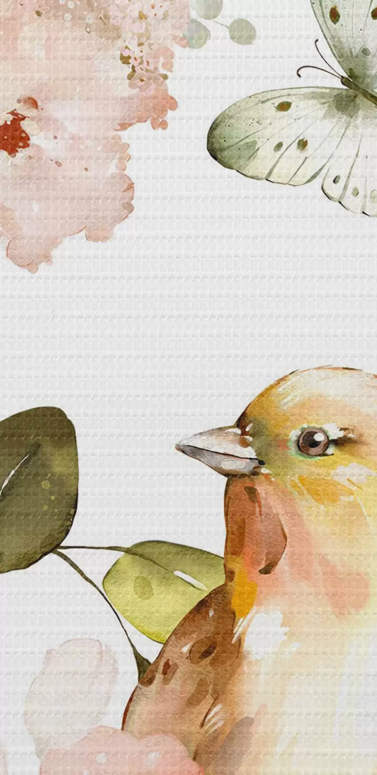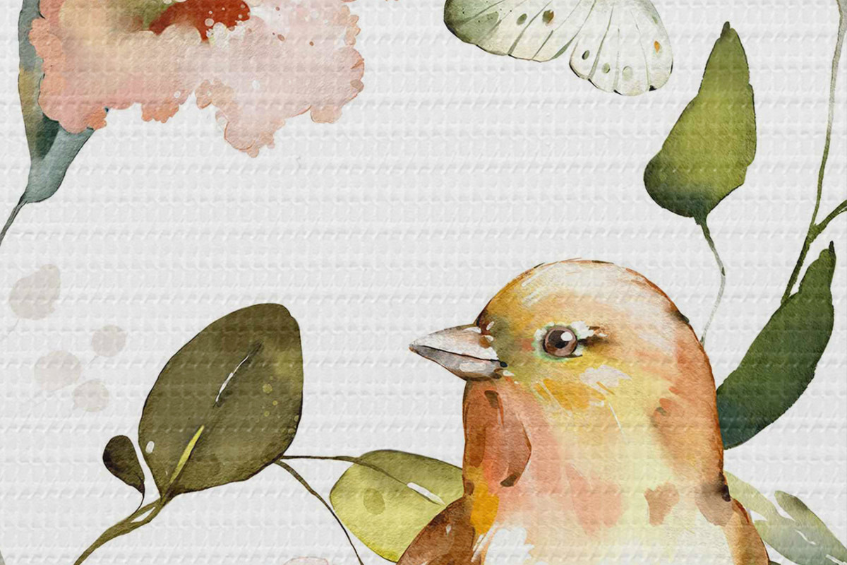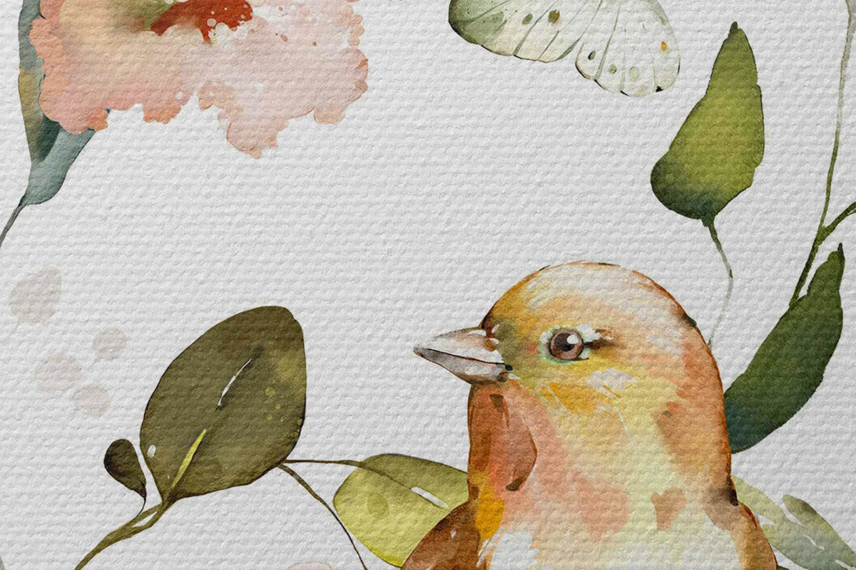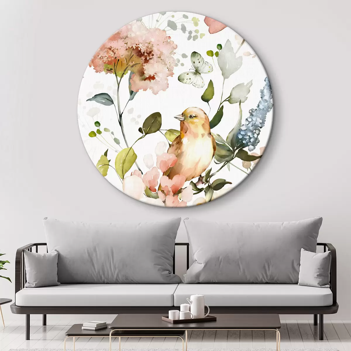 Ronde schilderijen Aquarel met bloemen, vogels en vlinders op een witte achtergrond Nr r36153