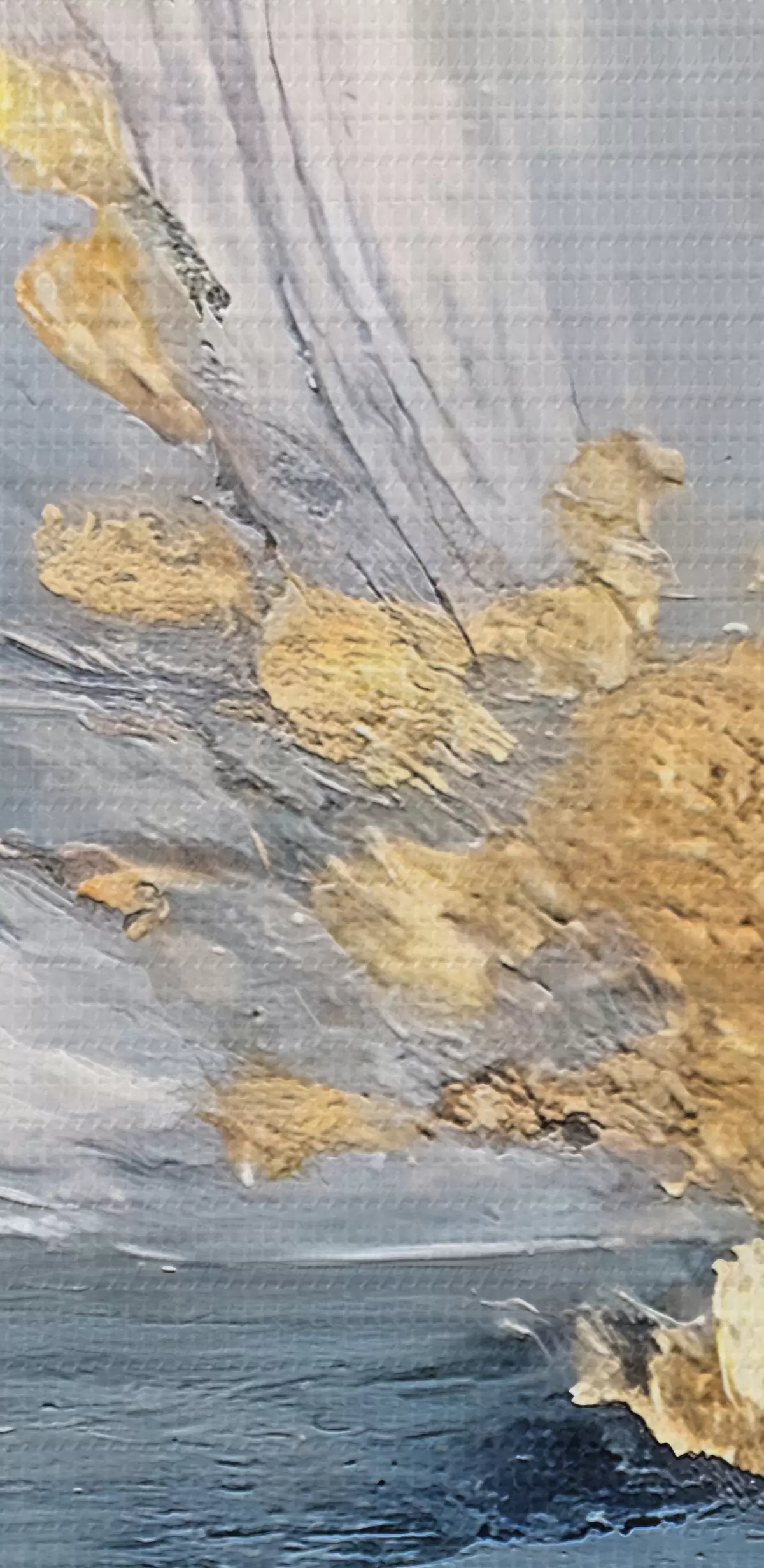 Het schilderij kan direct na ontvangst worden opgehangen. Het schilderij wordt opgespannen op een 2 cm breed houten spieraam.