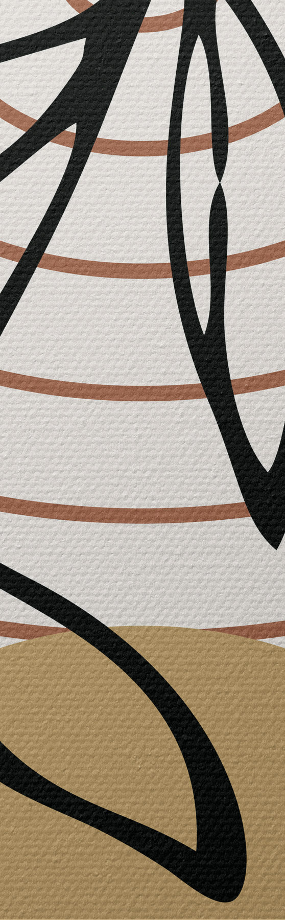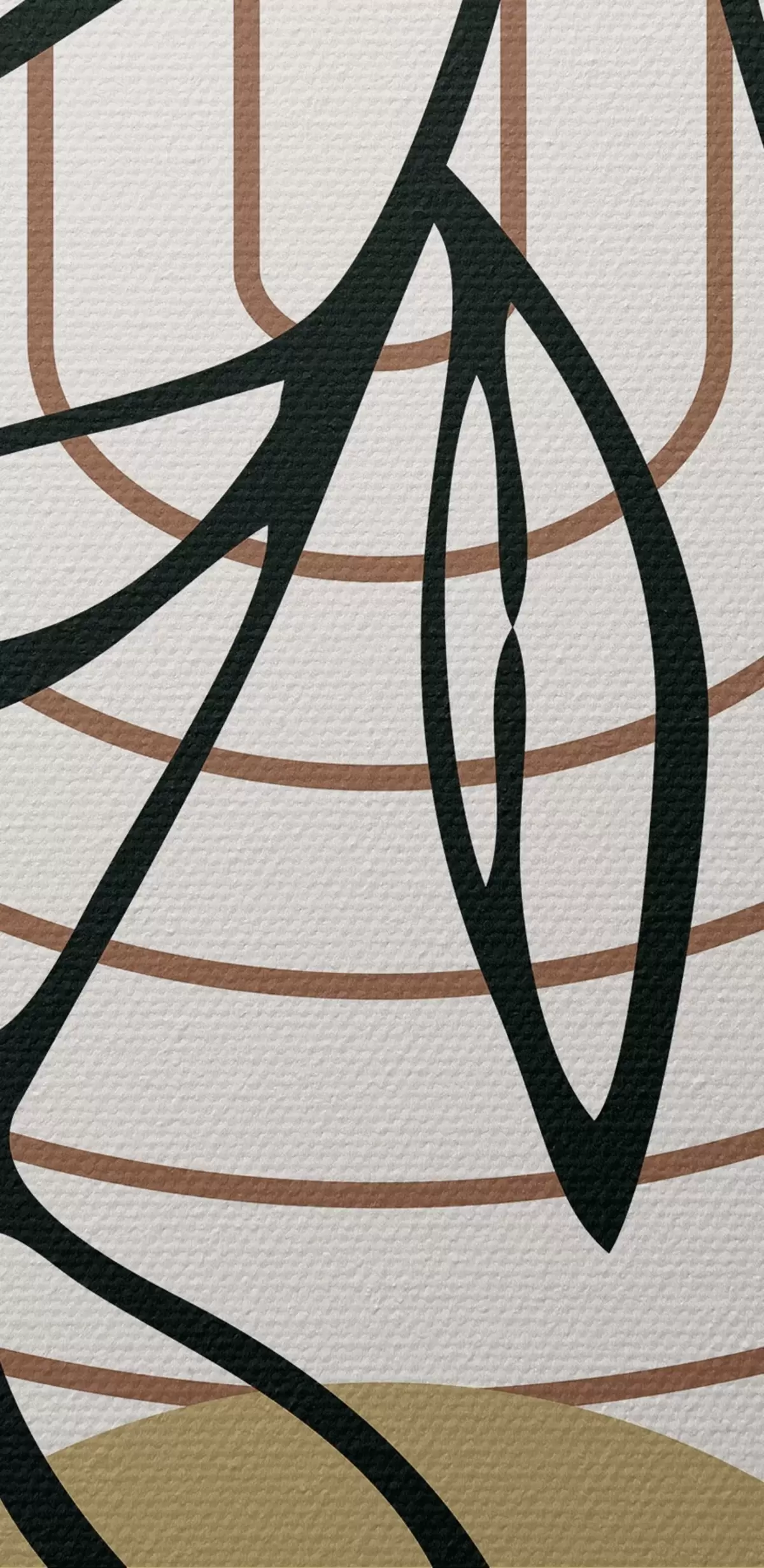 Ronde schilderijen Geometrische halve cirkels met hangende abstracte plant en spiraal Nr r36188