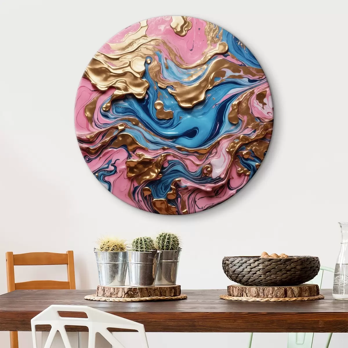 Ronde schilderijen Kleurrijke glans van goud, roze en blauw Nr r36227