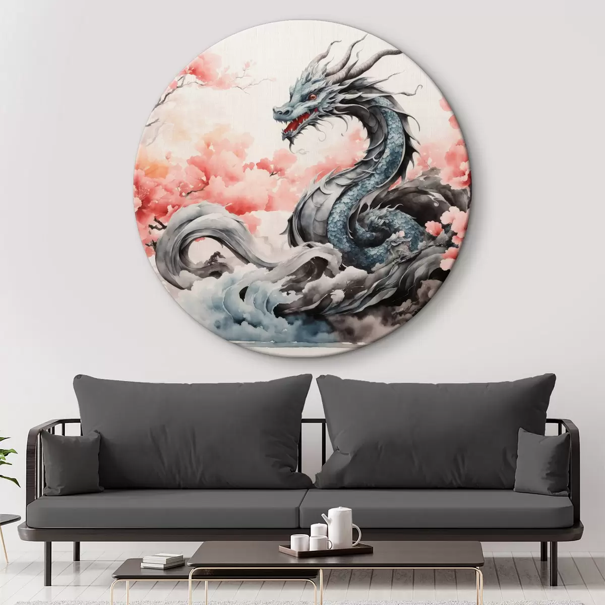 Ronde schilderijen Draak uit de Chinese mythologie aquarel Nr r36239