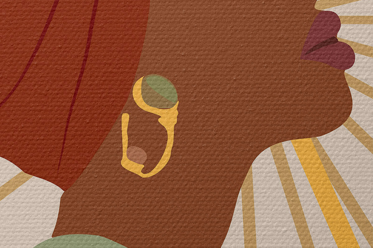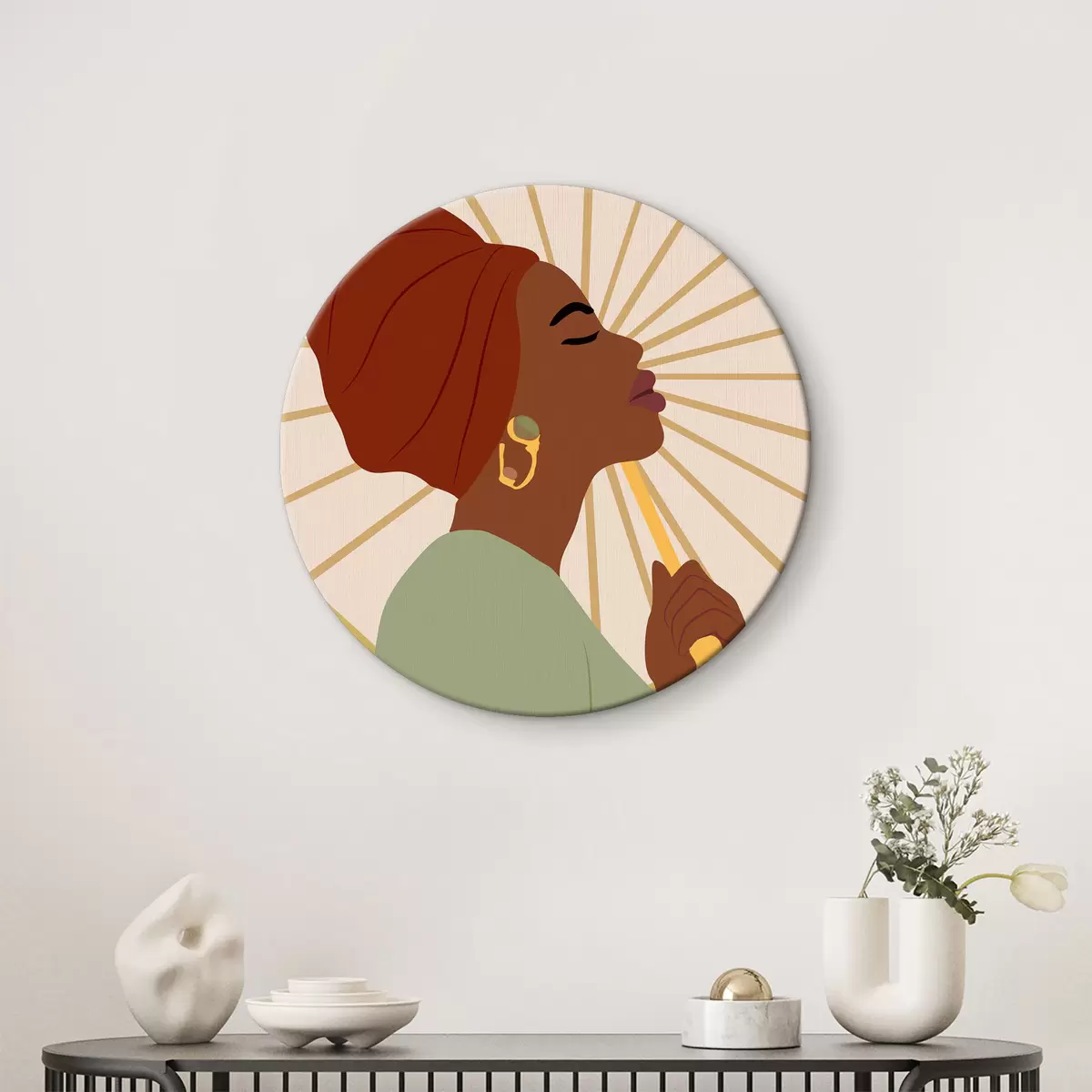 Ronde schilderijen Stijlvolle afro vrouw met paraplu Nr r36340