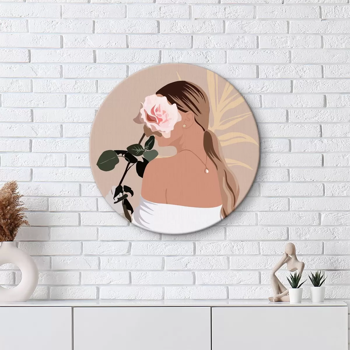 Ronde schilderijen Meisje met roze nam abstracte boho stijl toe Nr r36366