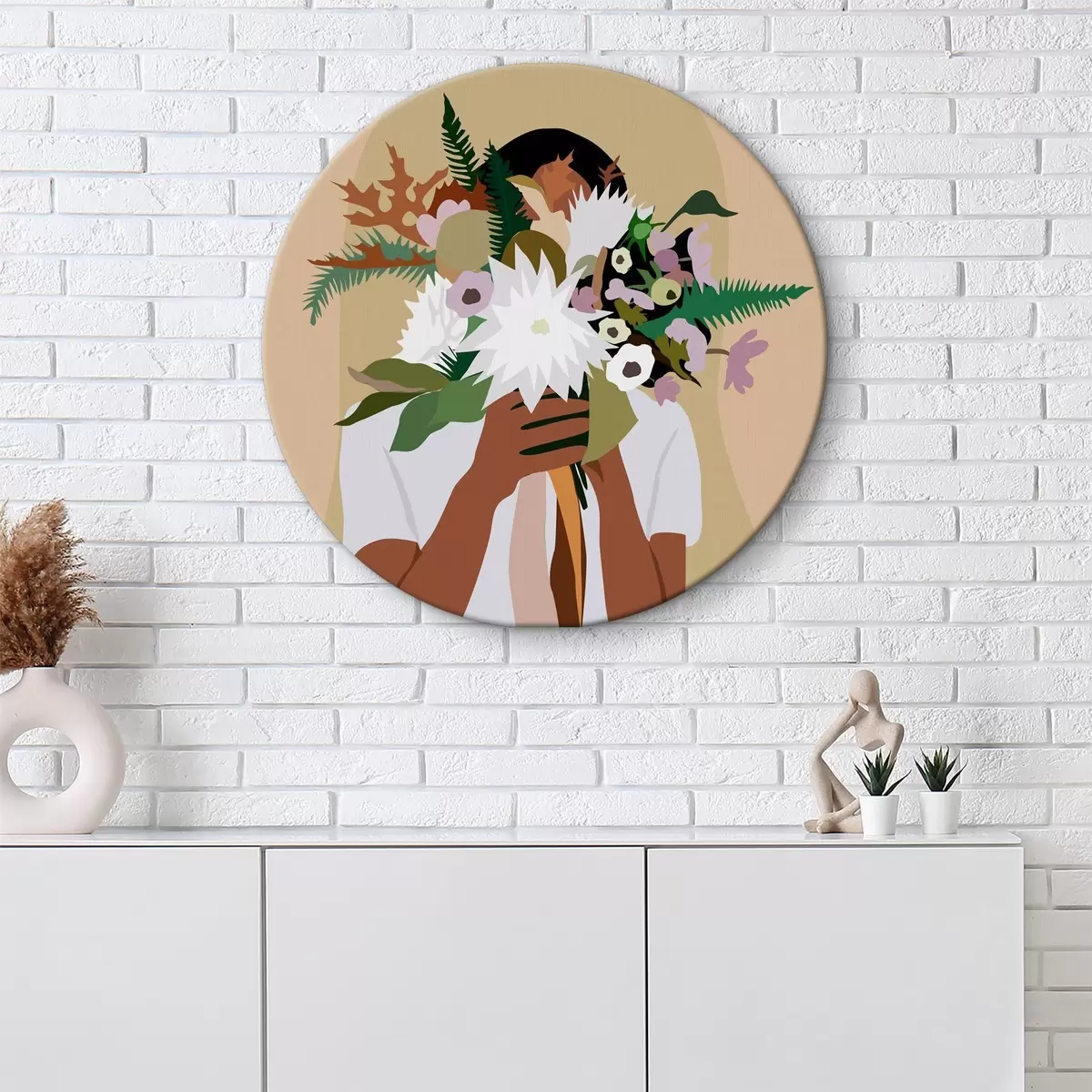 Ronde schilderijen Meisje met een boeket bloemen abstracte boho stijl Nr r36367