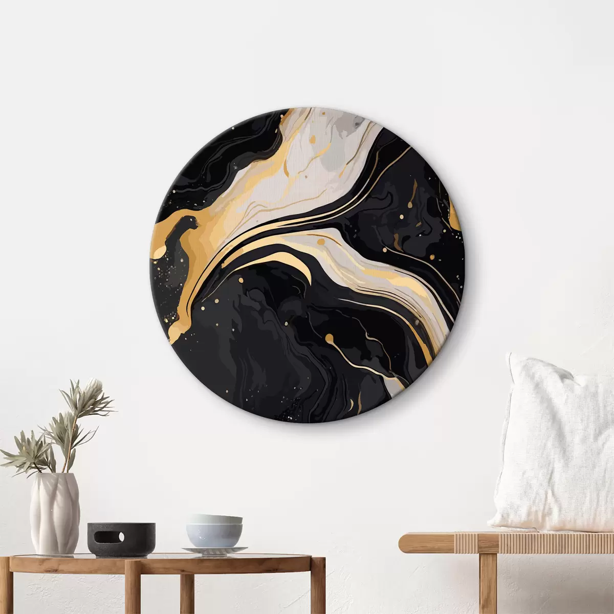Ronde schilderijen Stijlvol zwart marmer met goud Nr r36375