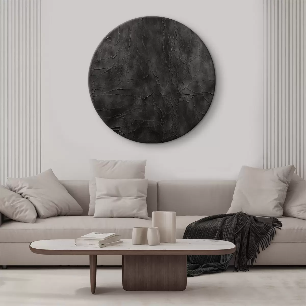Ronde schilderijen Close-up van een rotsoppervlak met donkere structuur Nr r36439