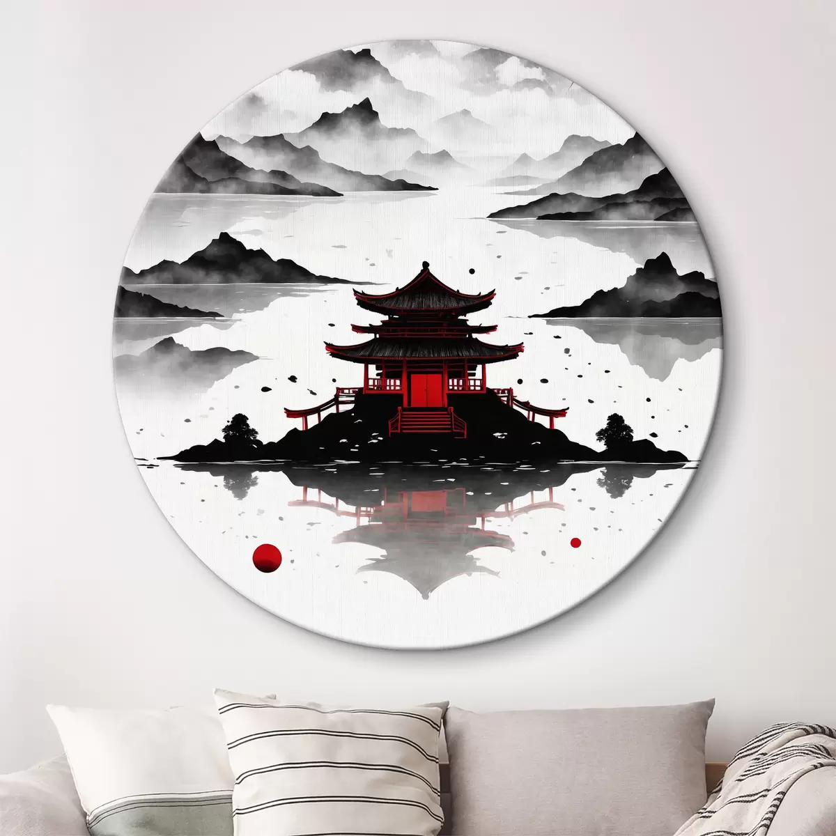 Ronde schilderijen Zwart-wit fantasieschilderij in Japanse stijl Nr r36441
