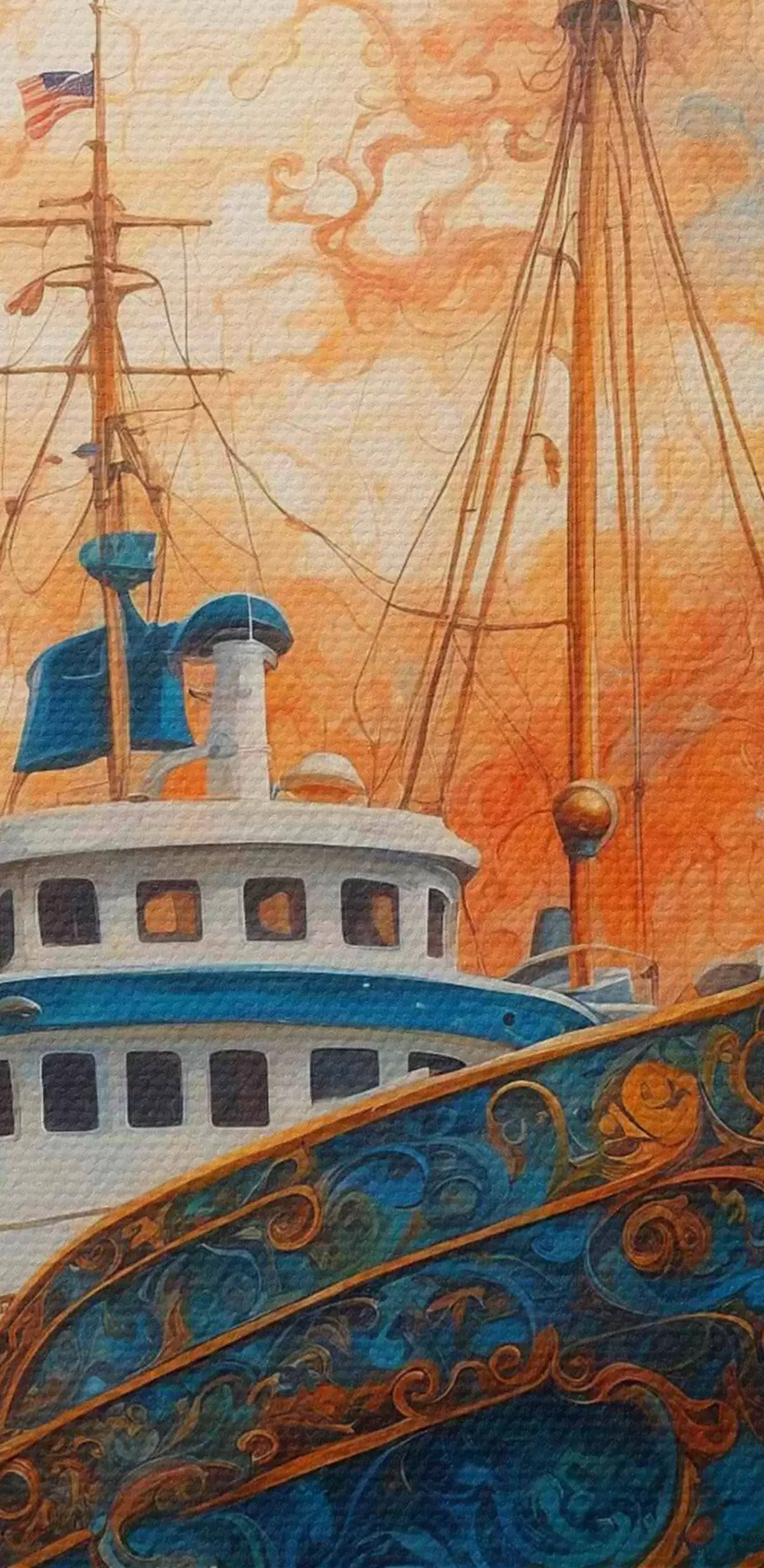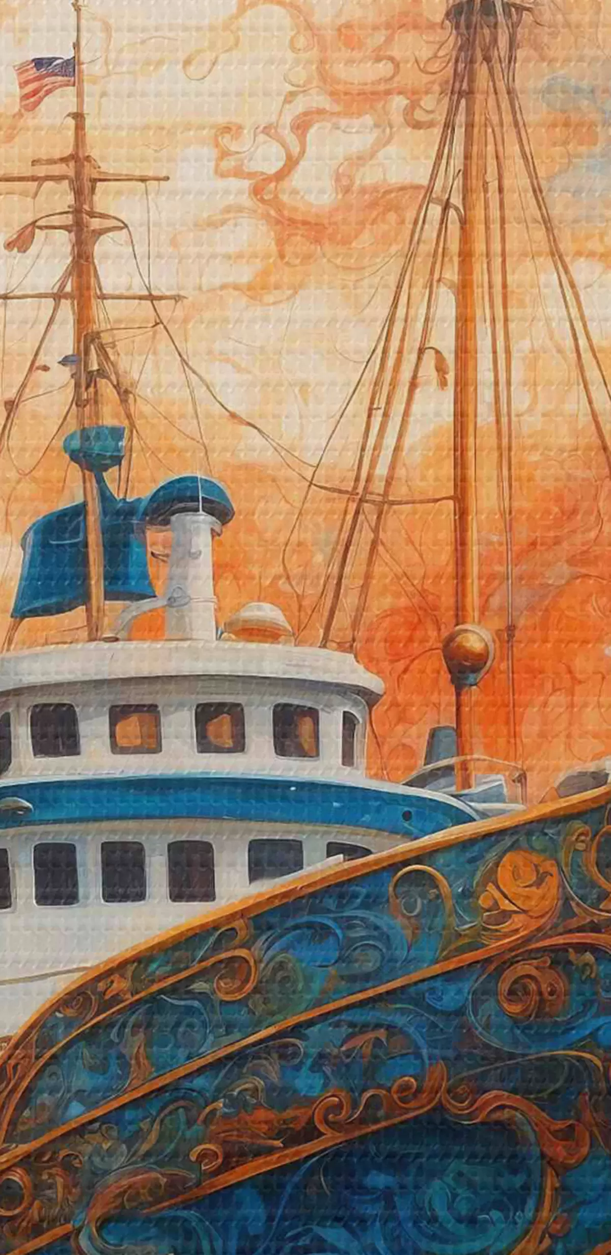 Ronde schilderijen Drijvend schip tegen de achtergrond van een fantastische lucht. Nr r36443