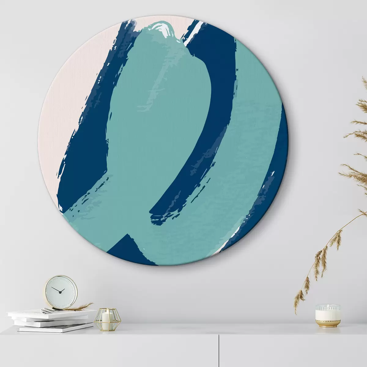 Ronde schilderijen Elegante wervelingen in rustige blauwe tinten Nr r36470