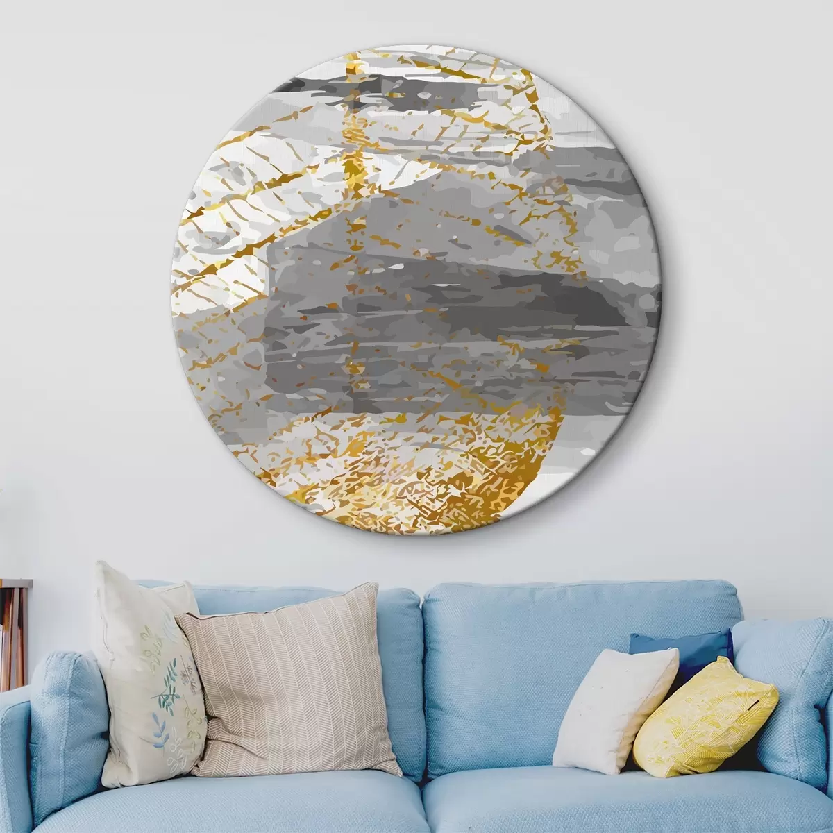 Ronde schilderijen Blad op grijze en witte achtergrond Nr r36483