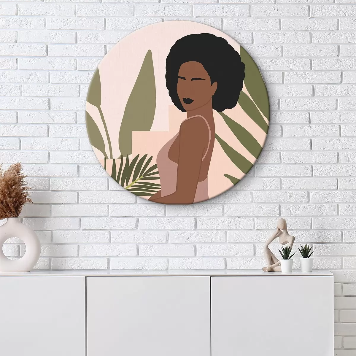 Ronde schilderijen Elegantie tussen rustige tropische bladeren Nr r36492