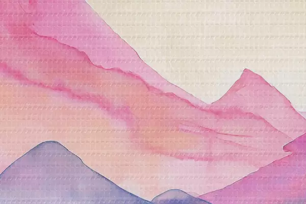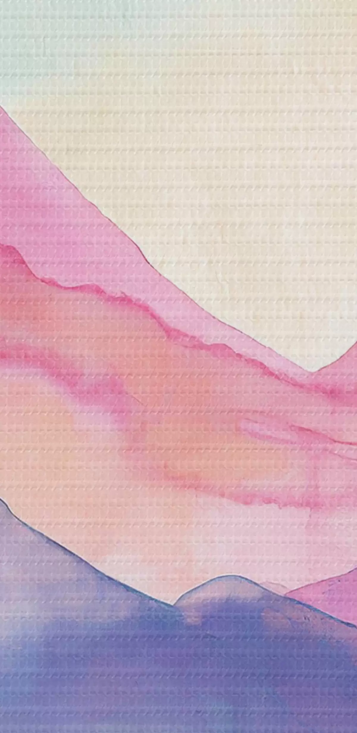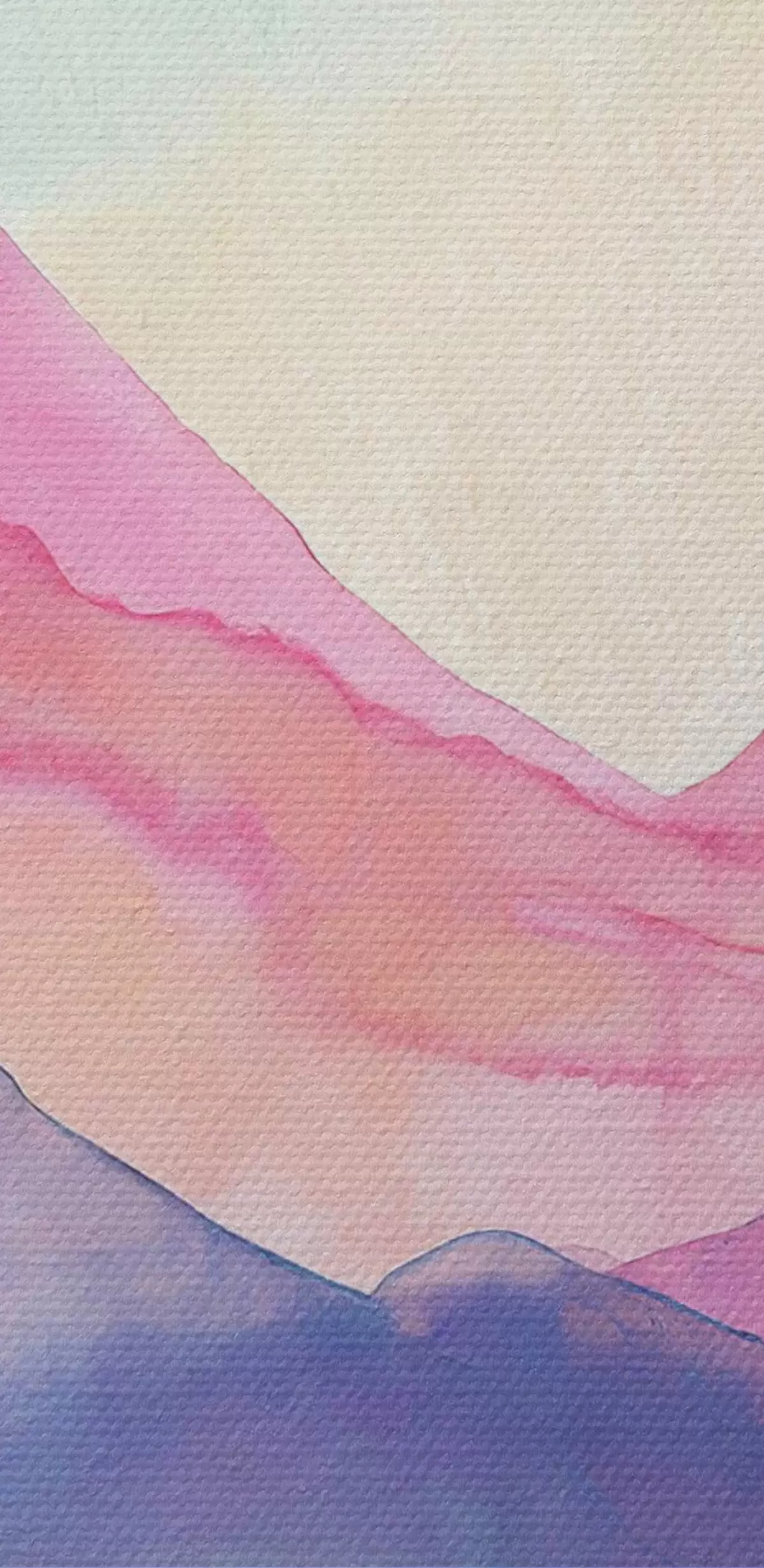Ronde schilderijen Aquarel Berglandschap, Zonsopgang, Zachte paarse, roze en blauwe kleuren Nr r36496