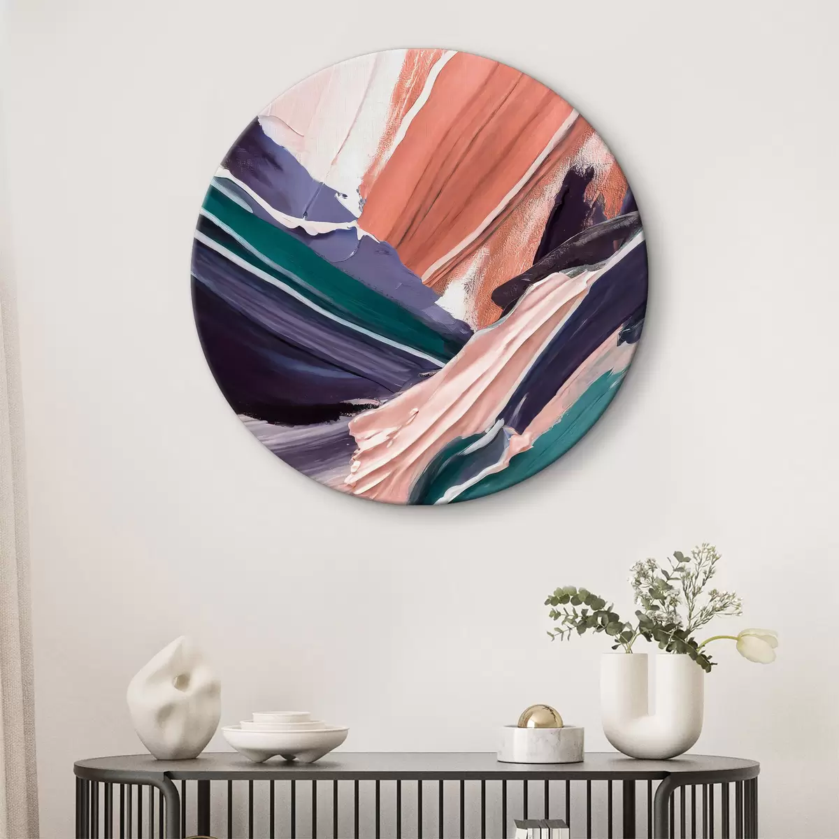 Ronde schilderijen Abstracte olieverf, penseelstreek, verftextuur, zachte oranje paarse kleuren r36498