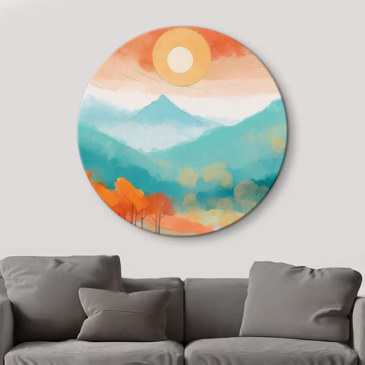 Ronde schilderijen Herfstwarmte in een sereen berglandschap Nr r36506