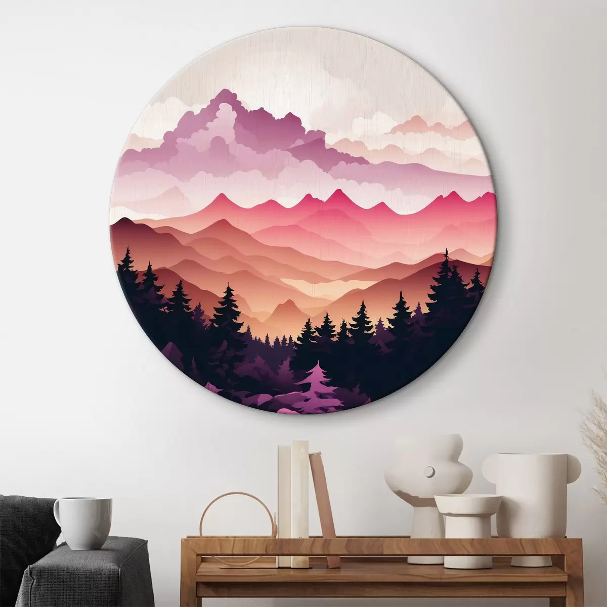 Ronde schilderijen Zonsondergang over de vredige bergen Nr r36528