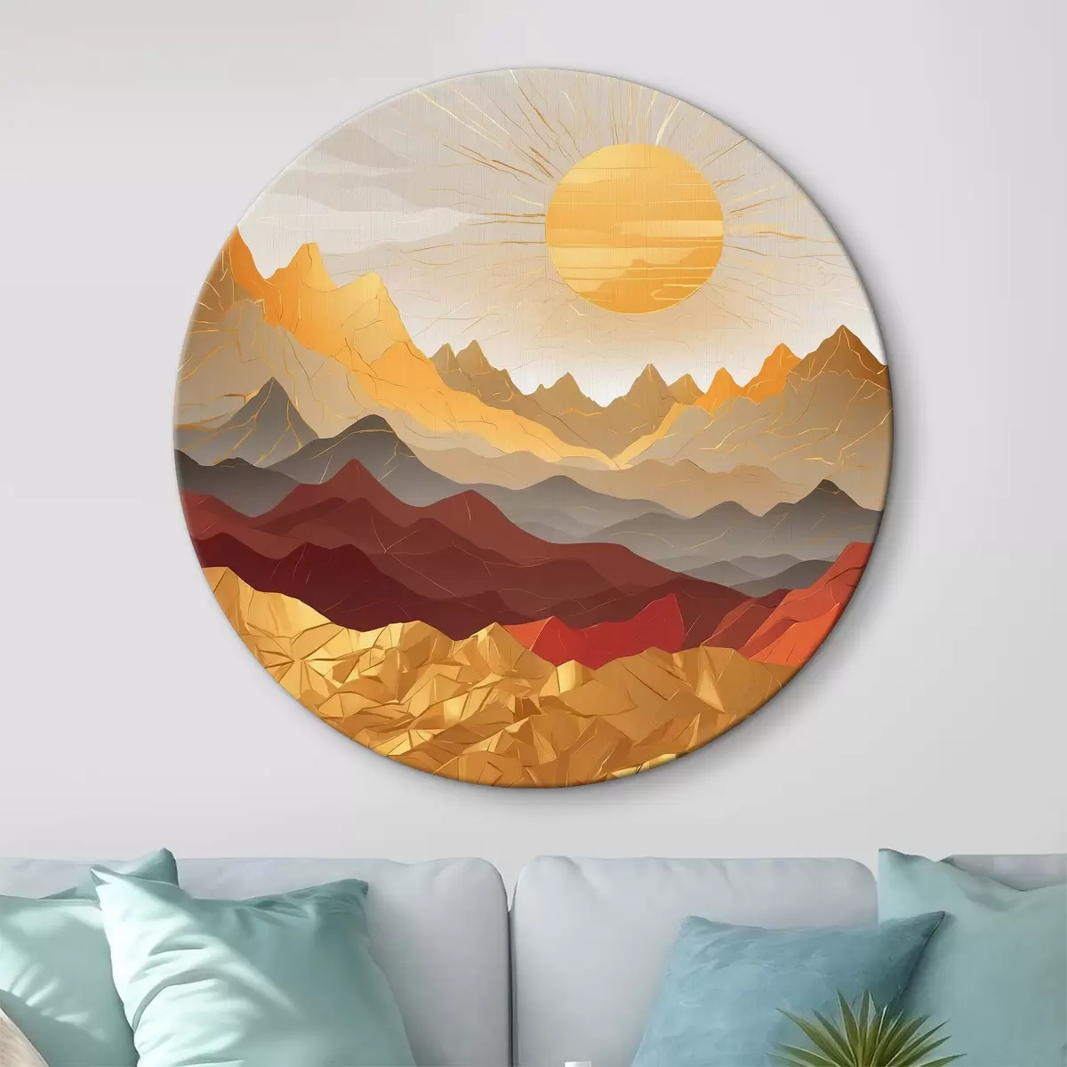 Ronde schilderijen Zonsopgang boven een geometrisch berglandschap Nr r36529