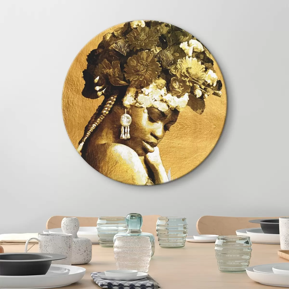 Ronde schilderijen Vrouw met bloemen op haar hoofd r36532