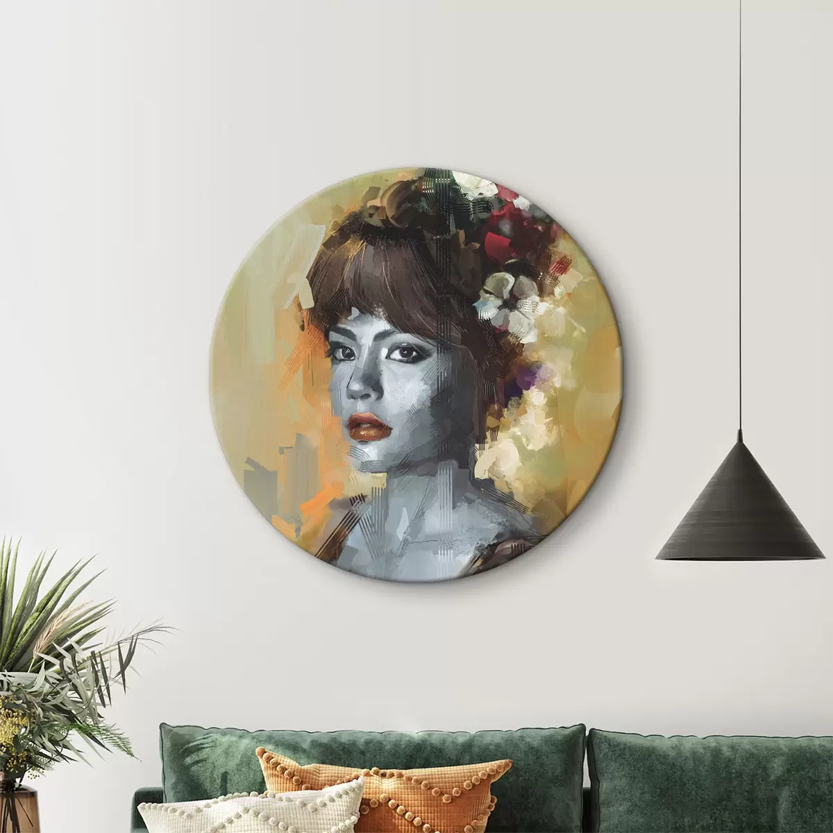 Ronde schilderijen Vrouw met bloemen in haar haar r36575