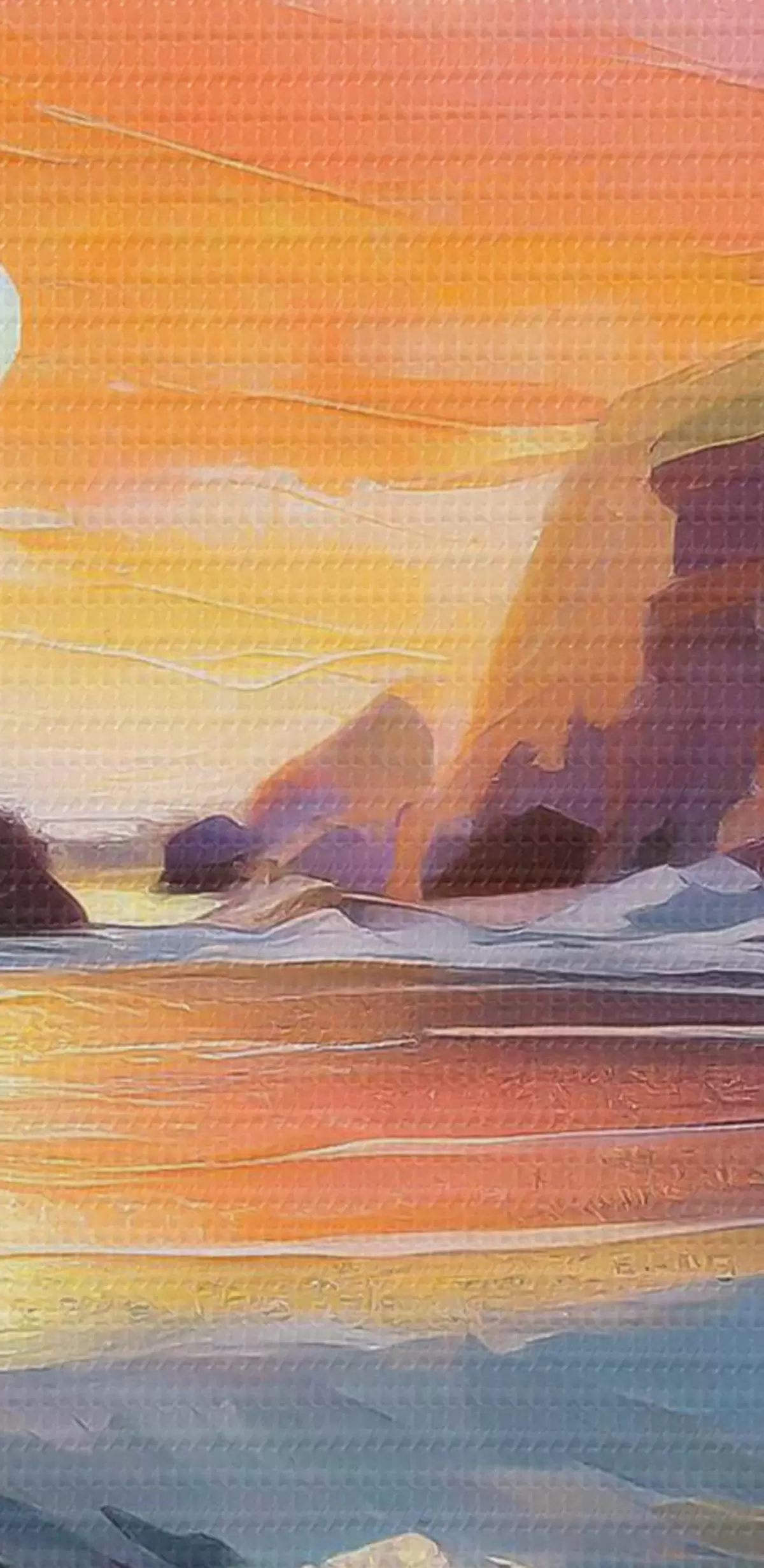 Ronde schilderijen Zonsopgang aan de kust, zeegolven, levendige penseelstreken, acryl r36581
