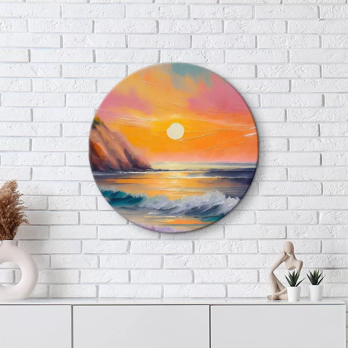 Ronde schilderijen De kleuren van de zonsondergang omarmen de kalme golven Nr r36582