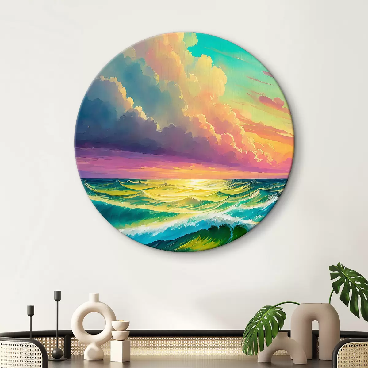 Ronde schilderijen De ondergaande golven dansen onder de geverfde hemel r36589