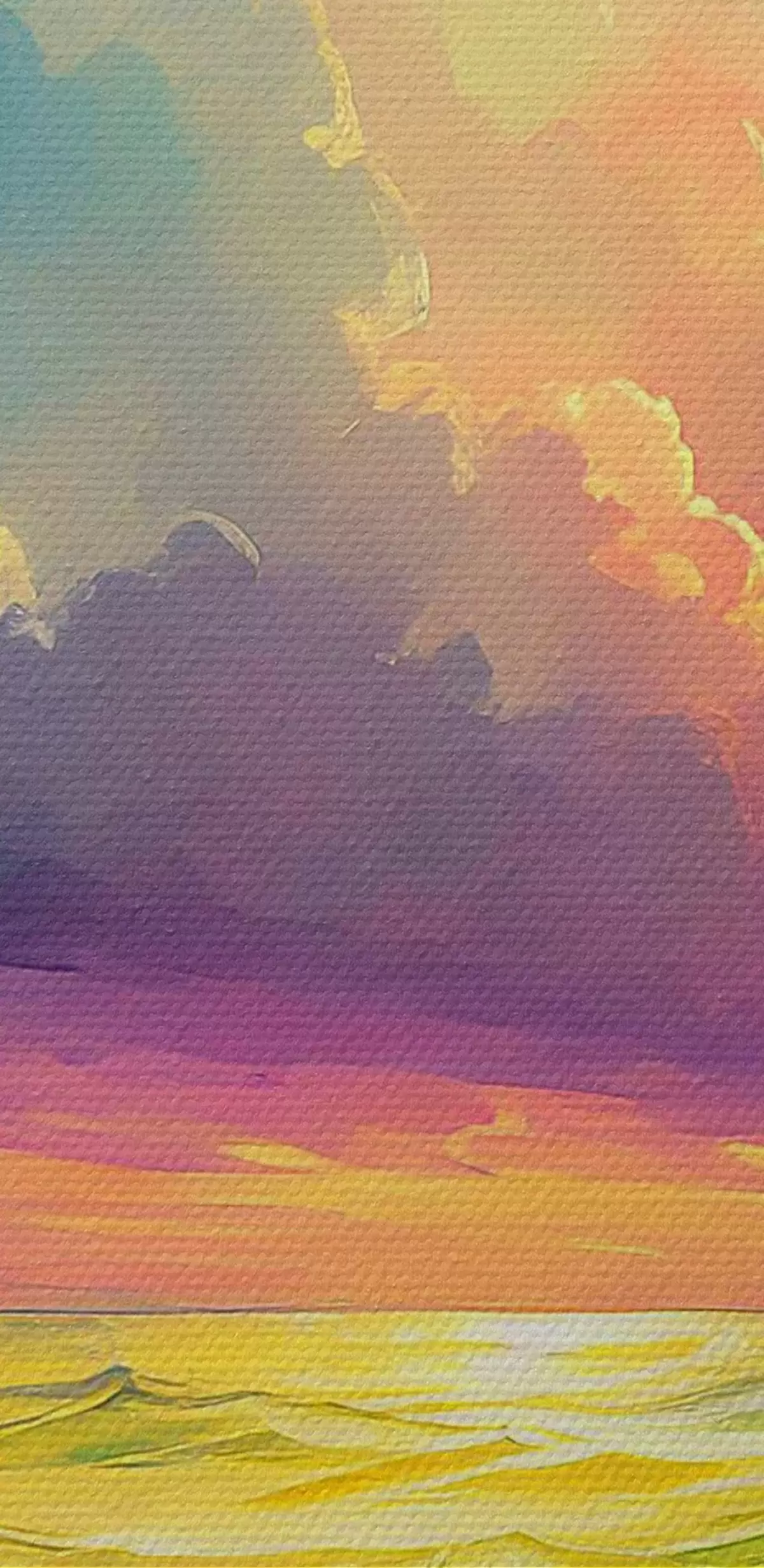 Ronde schilderijen De ondergaande golven dansen onder de geverfde hemel Nr r36589