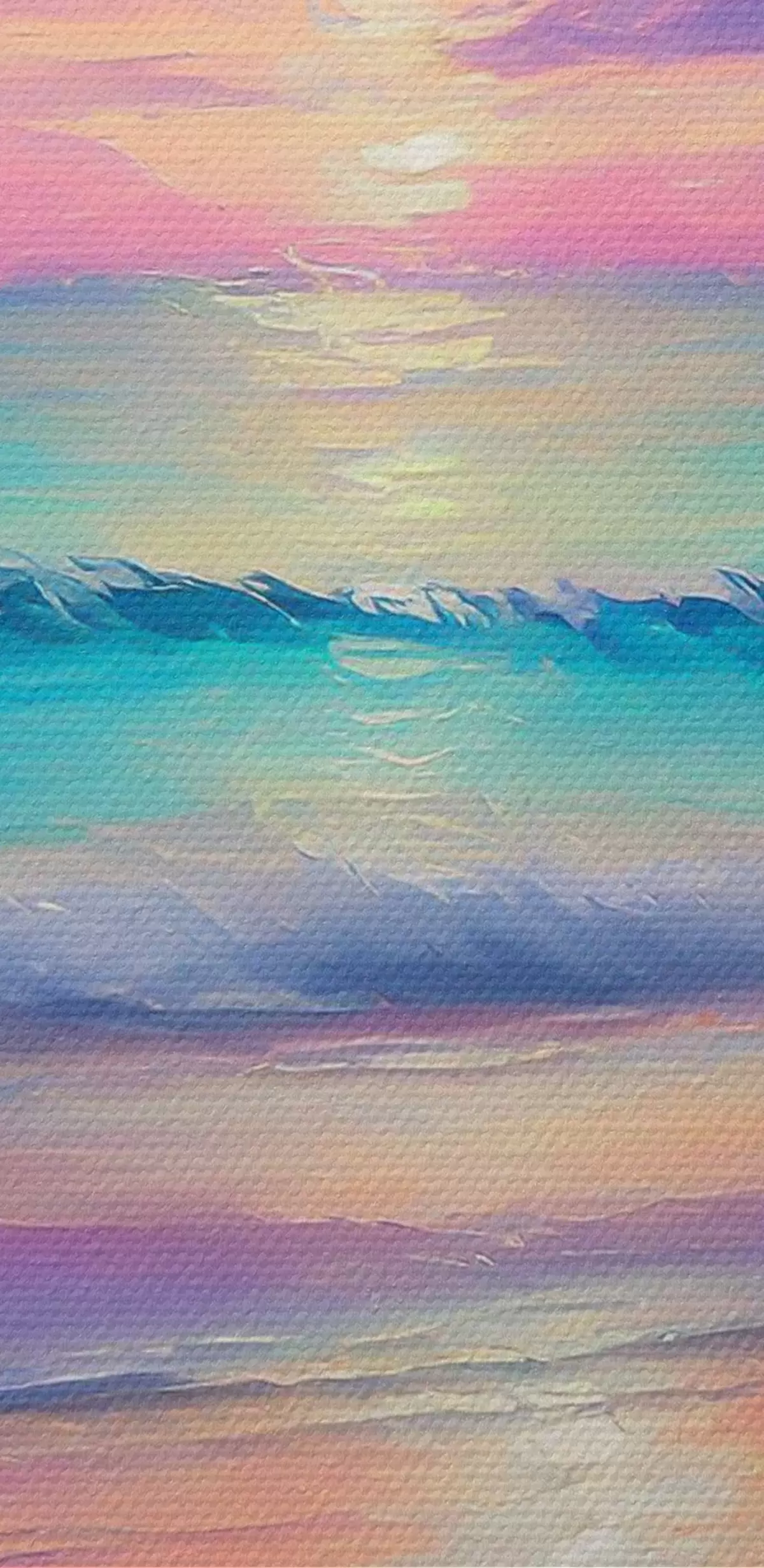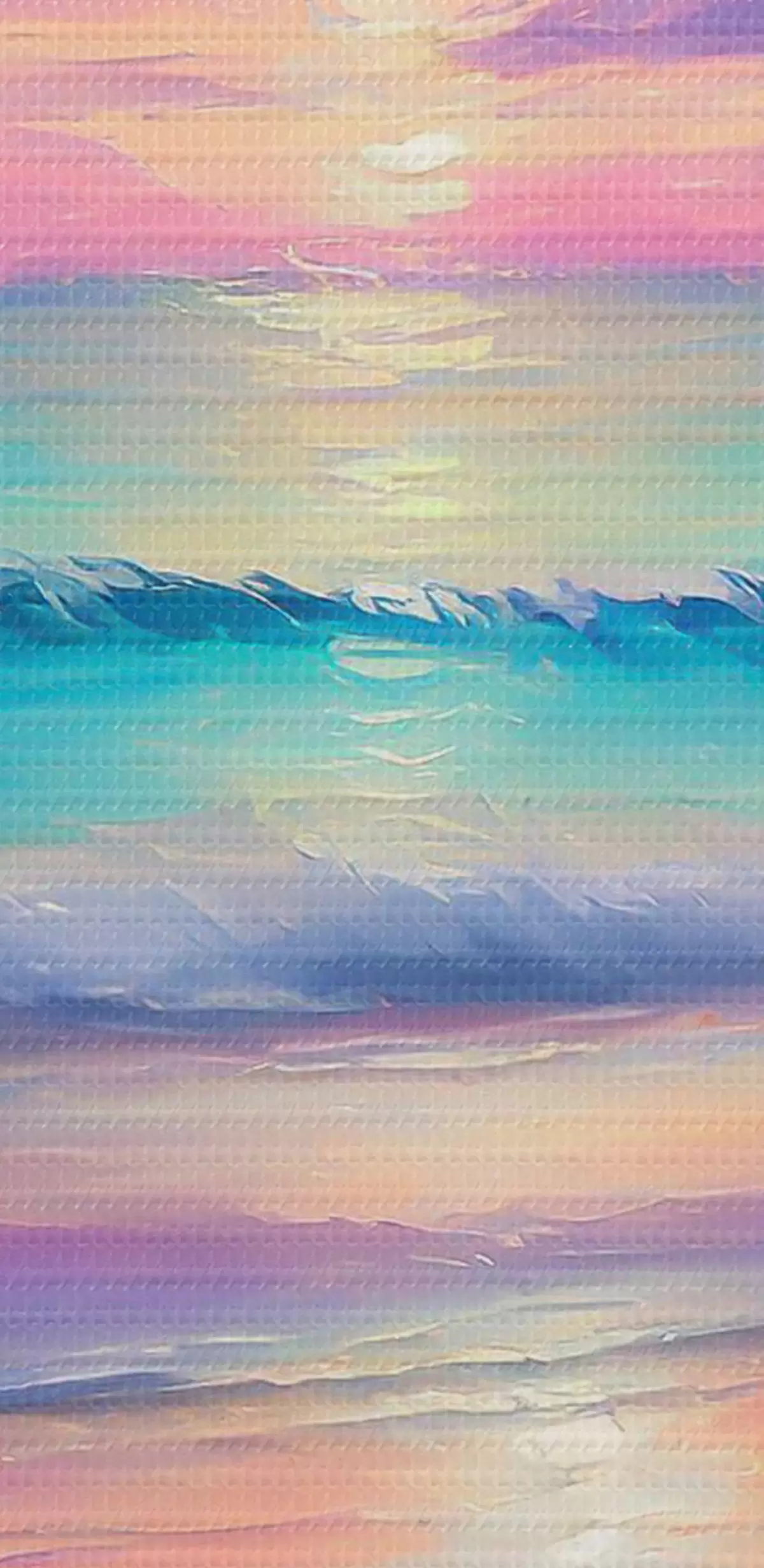 Ronde schilderijen Zachte paarse zonsondergang aan de zeekust, acryl tekening, gezellige strandsfeer Nr r36590