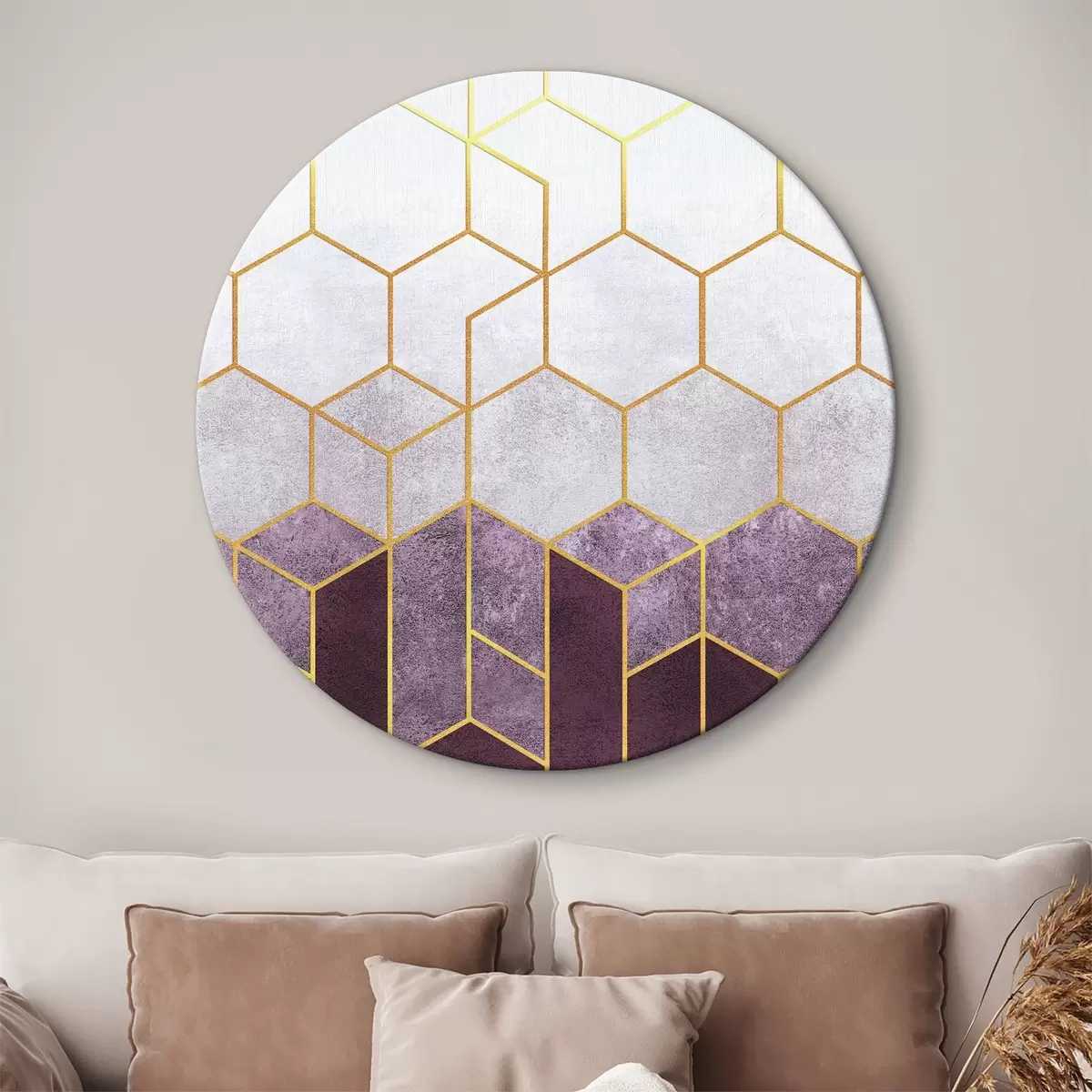 Ronde schilderijen Elegante structuurmuur met zeshoekig patroon Nr r36601v1