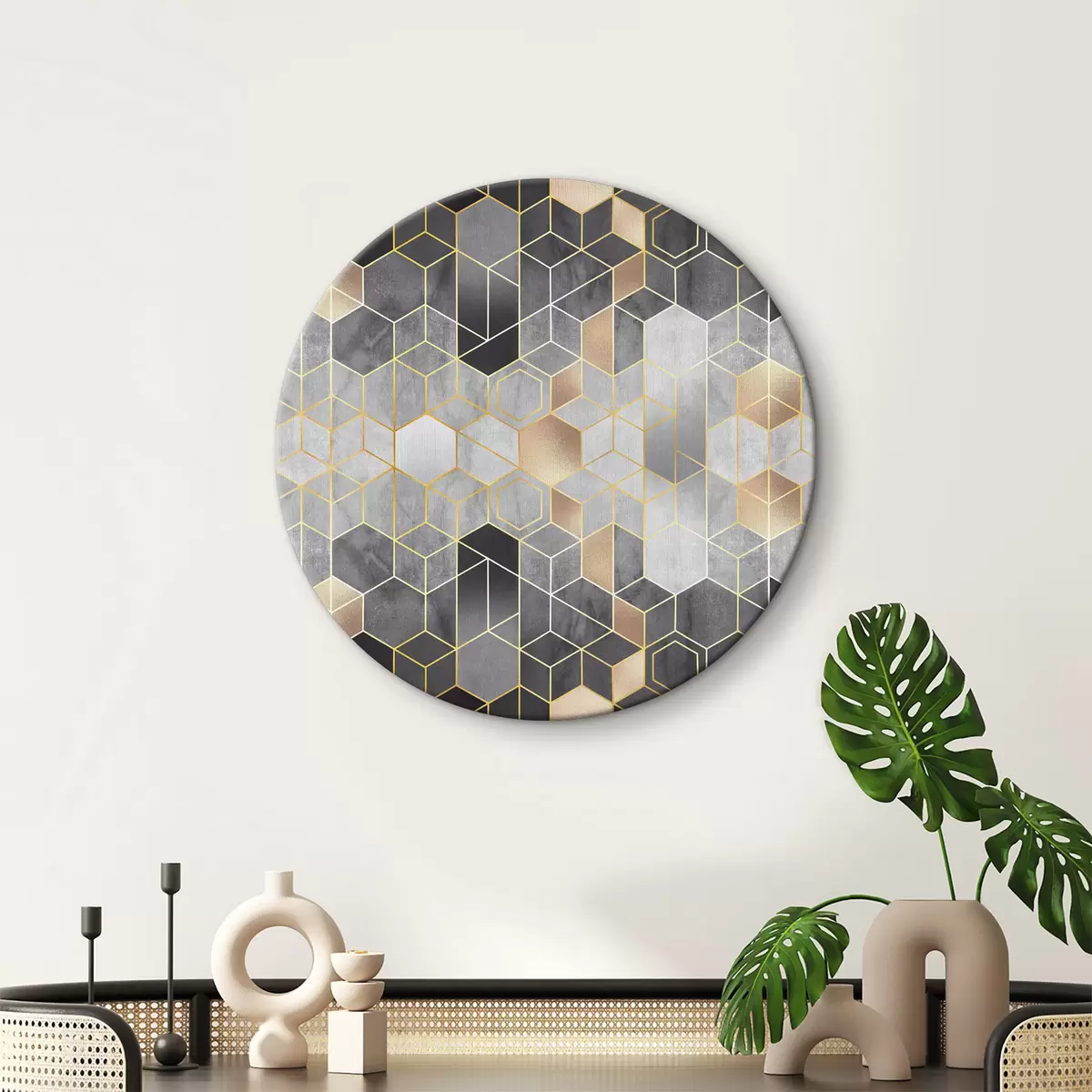 Ronde schilderijen Elegant zeshoekig patroon in neutrale kleuren r36602