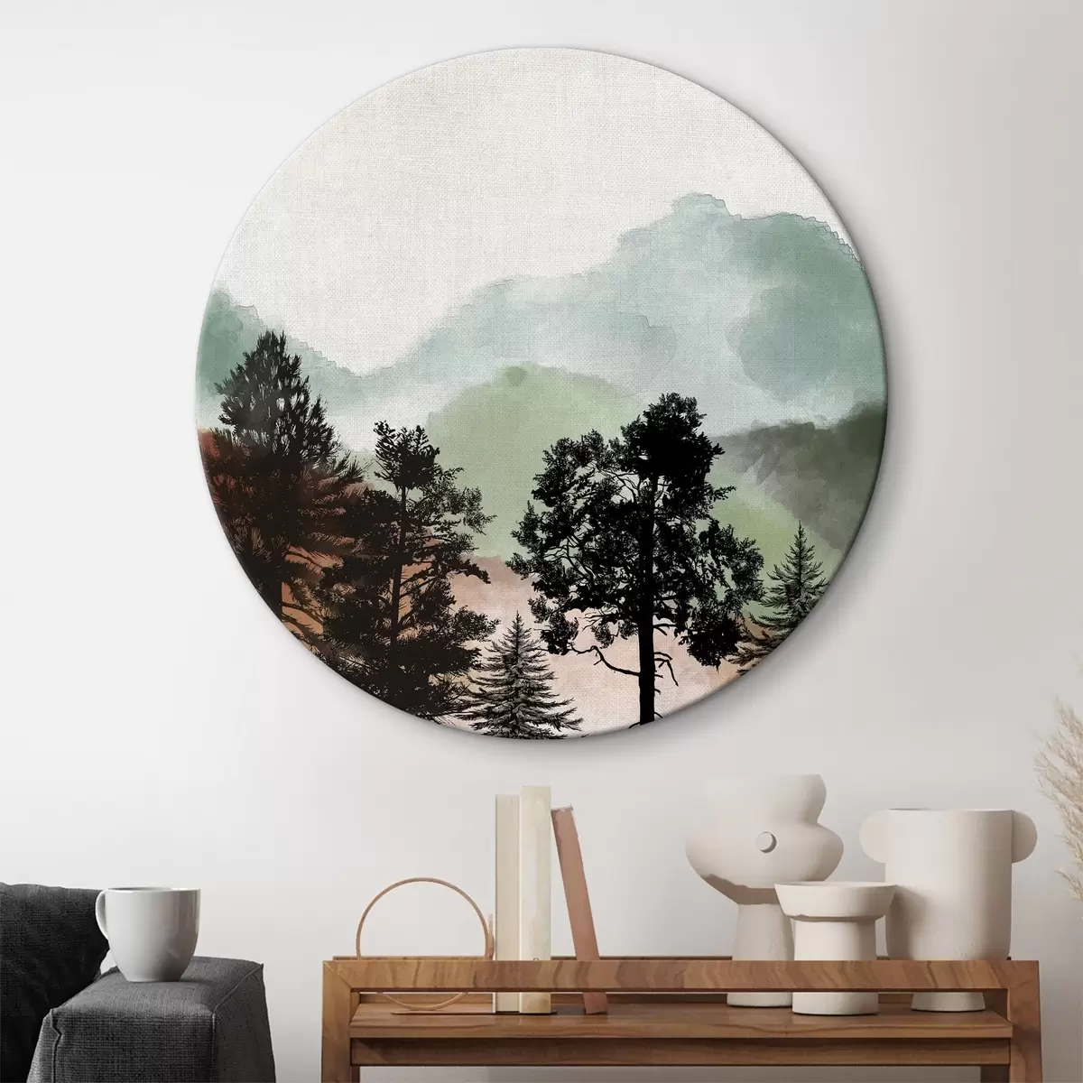 Ronde schilderijen Aquarel berglandschap met bomen Nr r36603