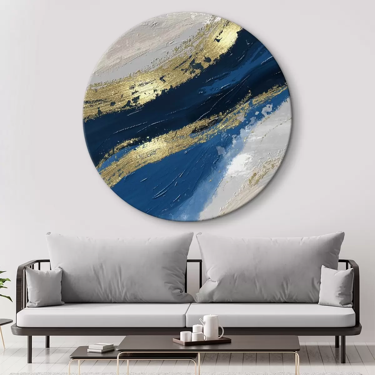 Ronde schilderijen Elegante wervelingen in blauw en wit Nr r36606