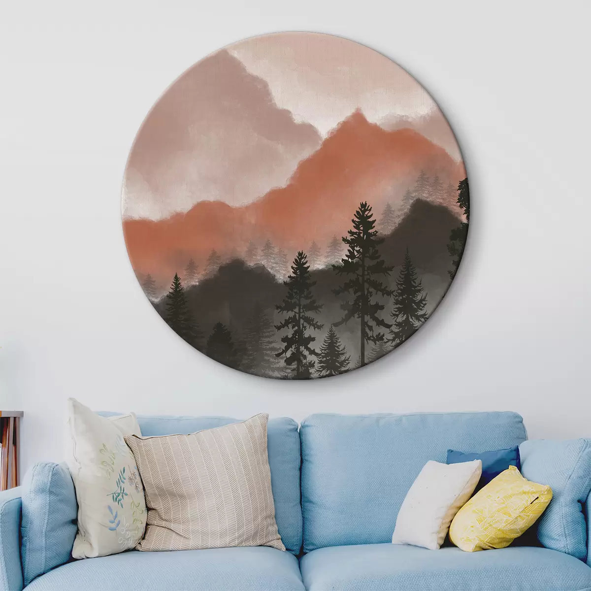 Ronde schilderijen Abstracte aquarel bergen r36607v2
