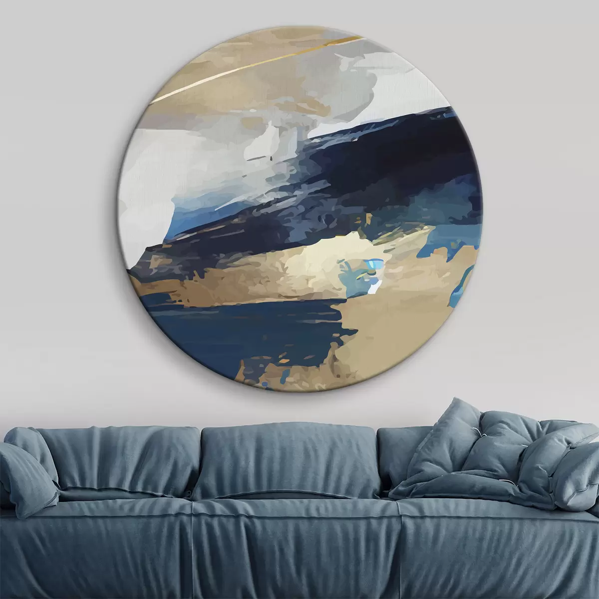 Ronde schilderijen Expressieve grijze en blauwe abstractie r36621