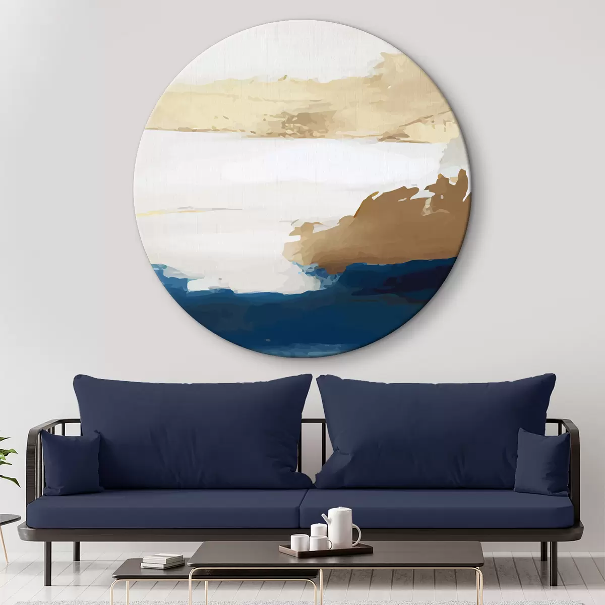 Ronde schilderijen Lichte abstractie met blauwe accenten Nr r36622