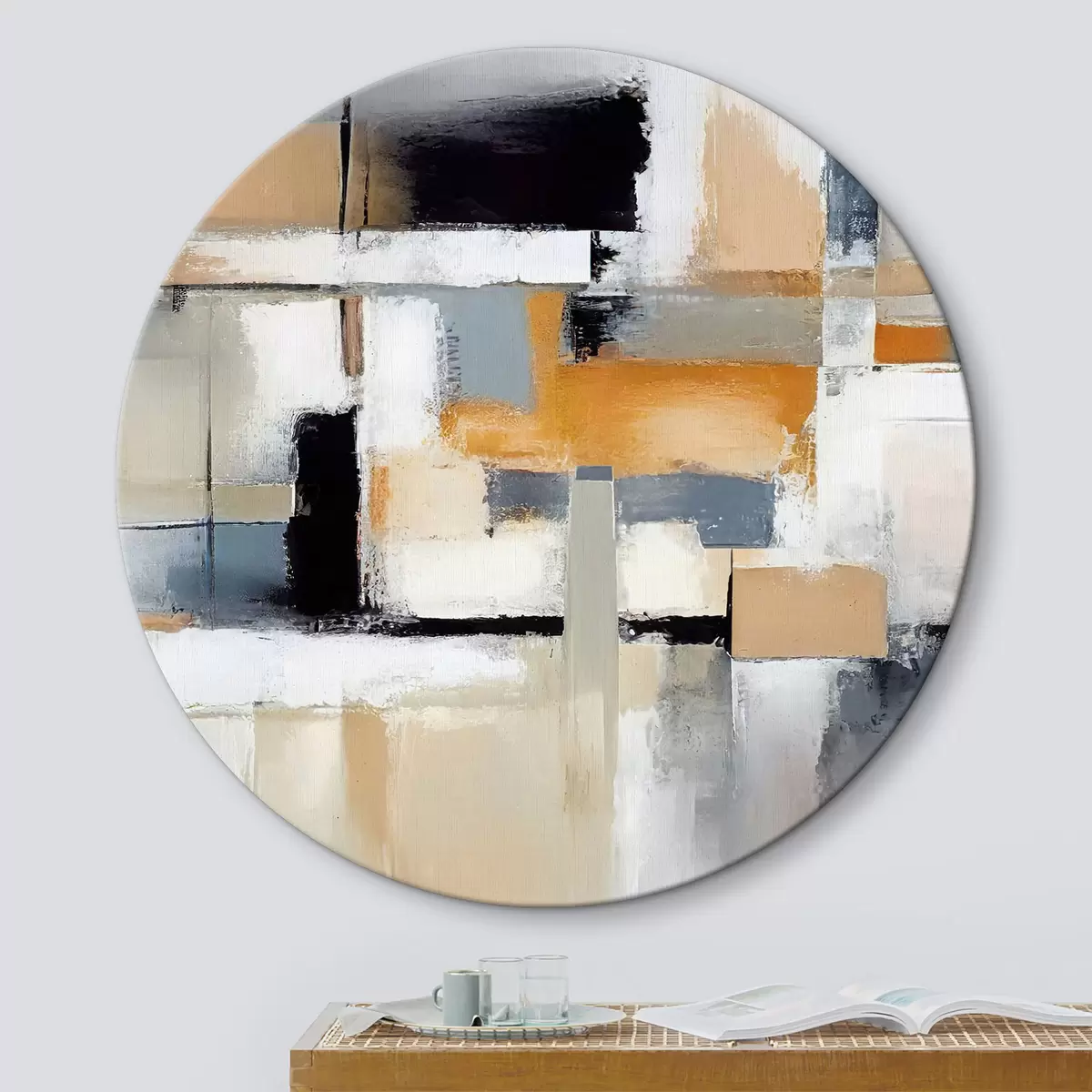 Ronde schilderijen Beige-grijze abstractie met oranje en wit r36624