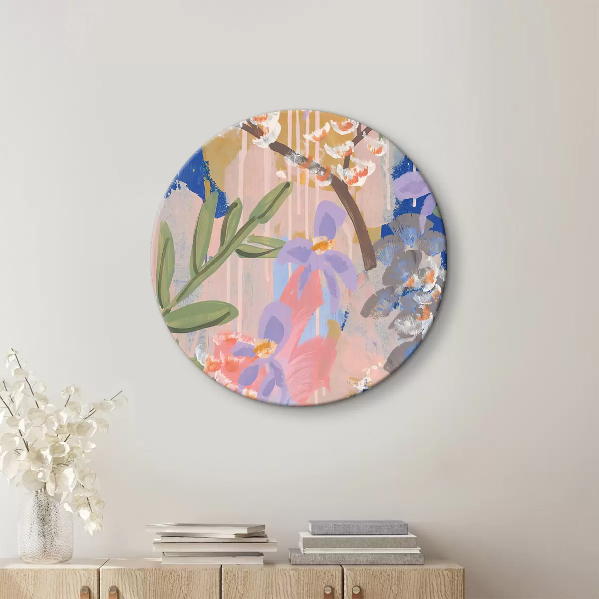 Ronde schilderijen Een schilderij van bloemen en bladeren Nr r36626