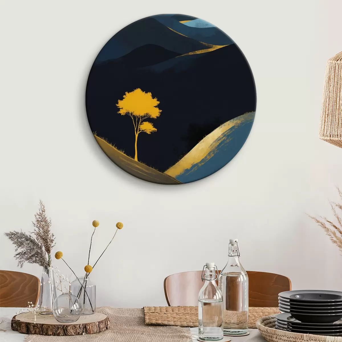 Ronde schilderijen Een eenzame boom onder een sterrenloze nachthemel Nr r36639