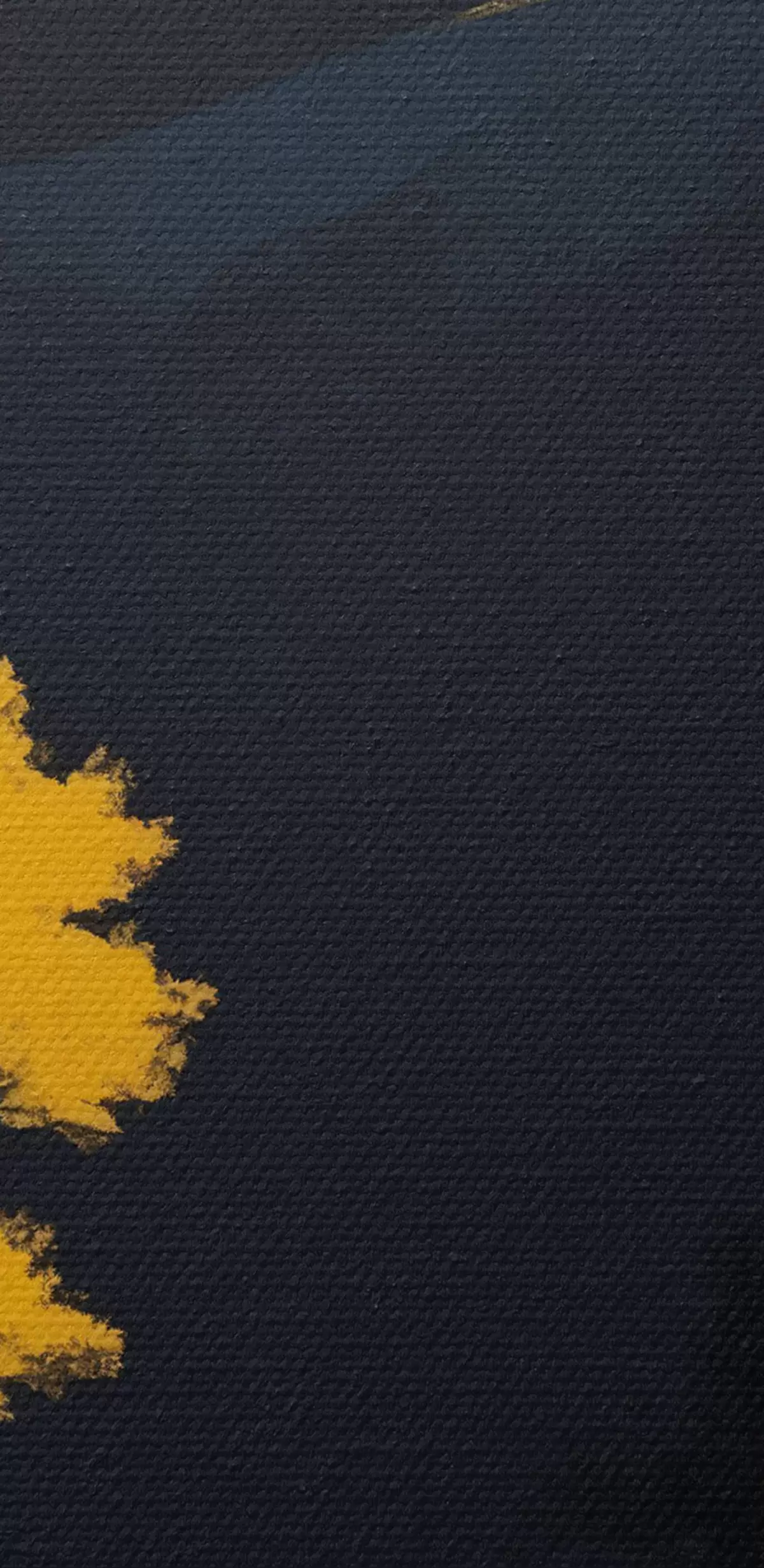 Het schilderij kan direct na ontvangst worden opgehangen. Het schilderij wordt opgespannen op een 2 cm breed houten spieraam.