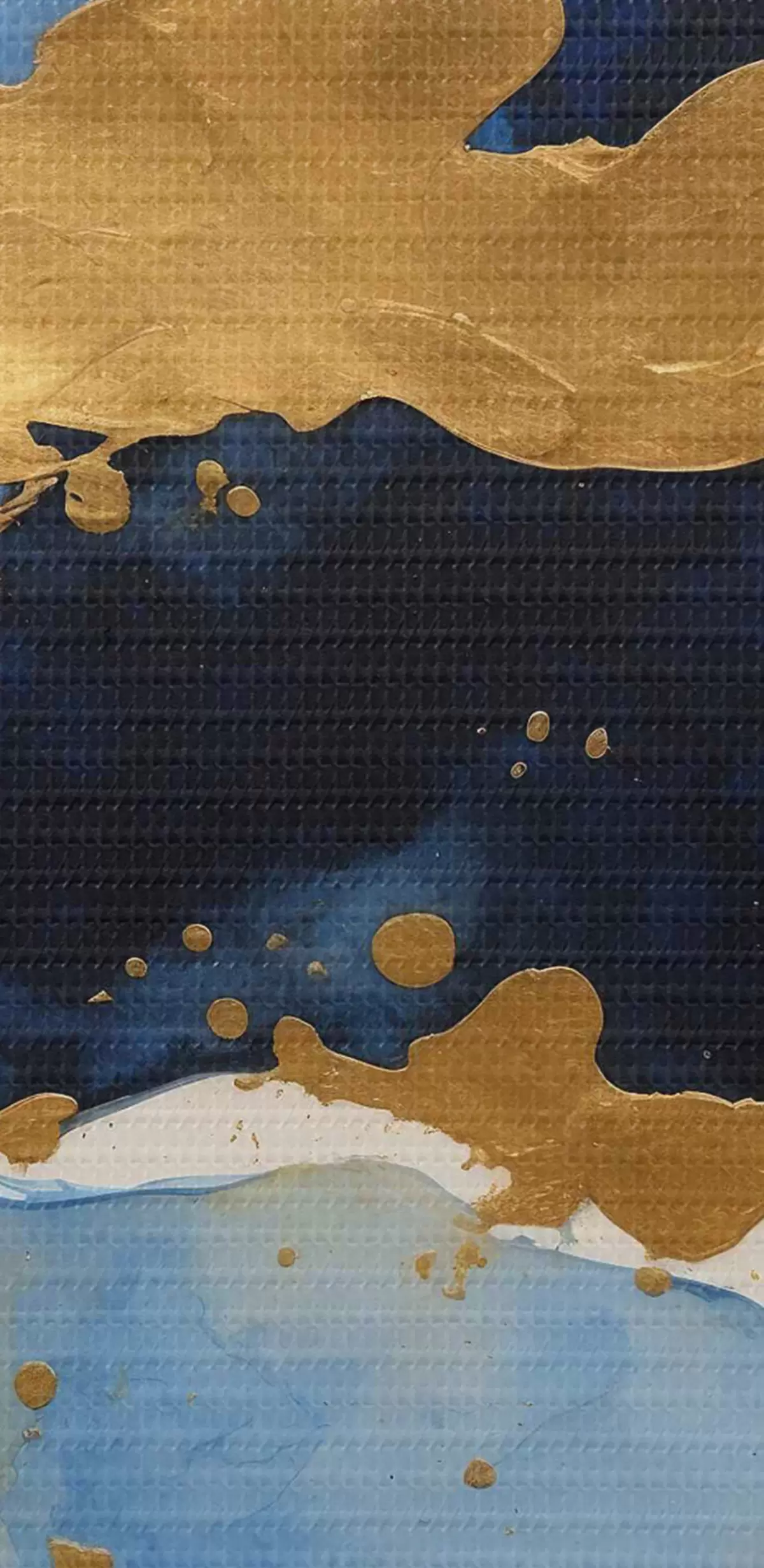 Het schilderij kan direct na ontvangst worden opgehangen. Het schilderij wordt opgespannen op een 2 cm breed houten spieraam.