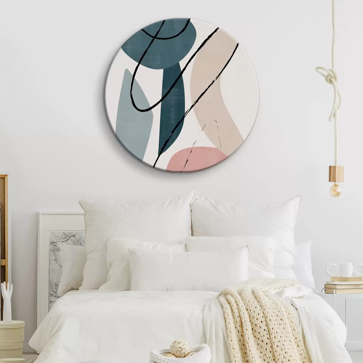 Ronde schilderijen Een kunstwerk met verschillende vormen en kleuren r36653