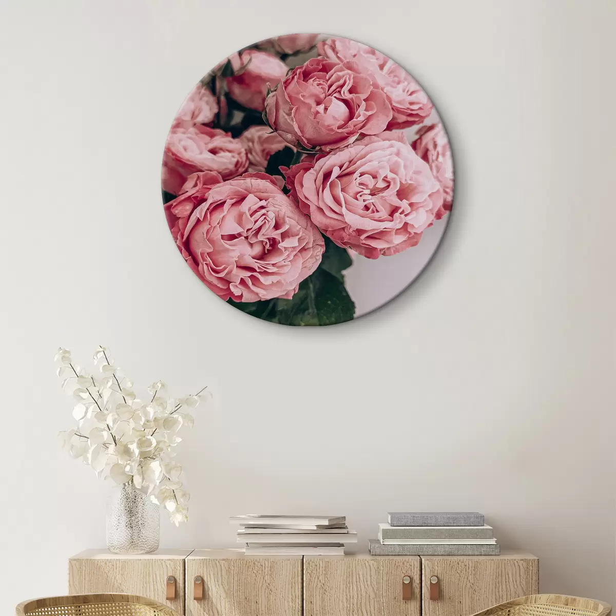 Ronde schilderijen Groep roze bloemen Nr r36692