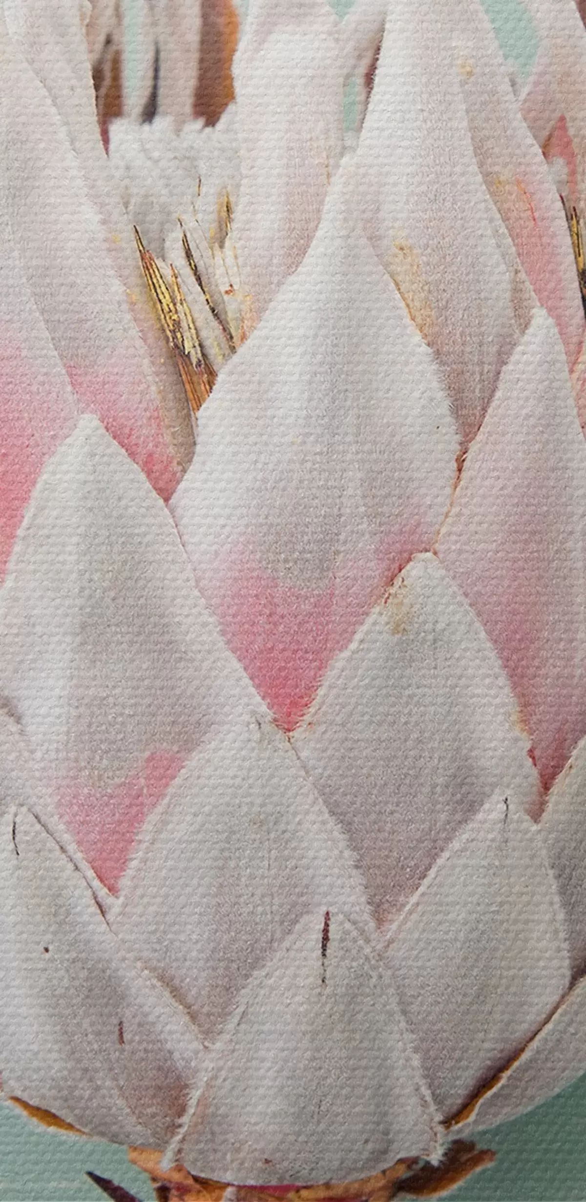De fijne weving van draden op dit doek lijkt op het oppervlak van professionele schildersdoeken.