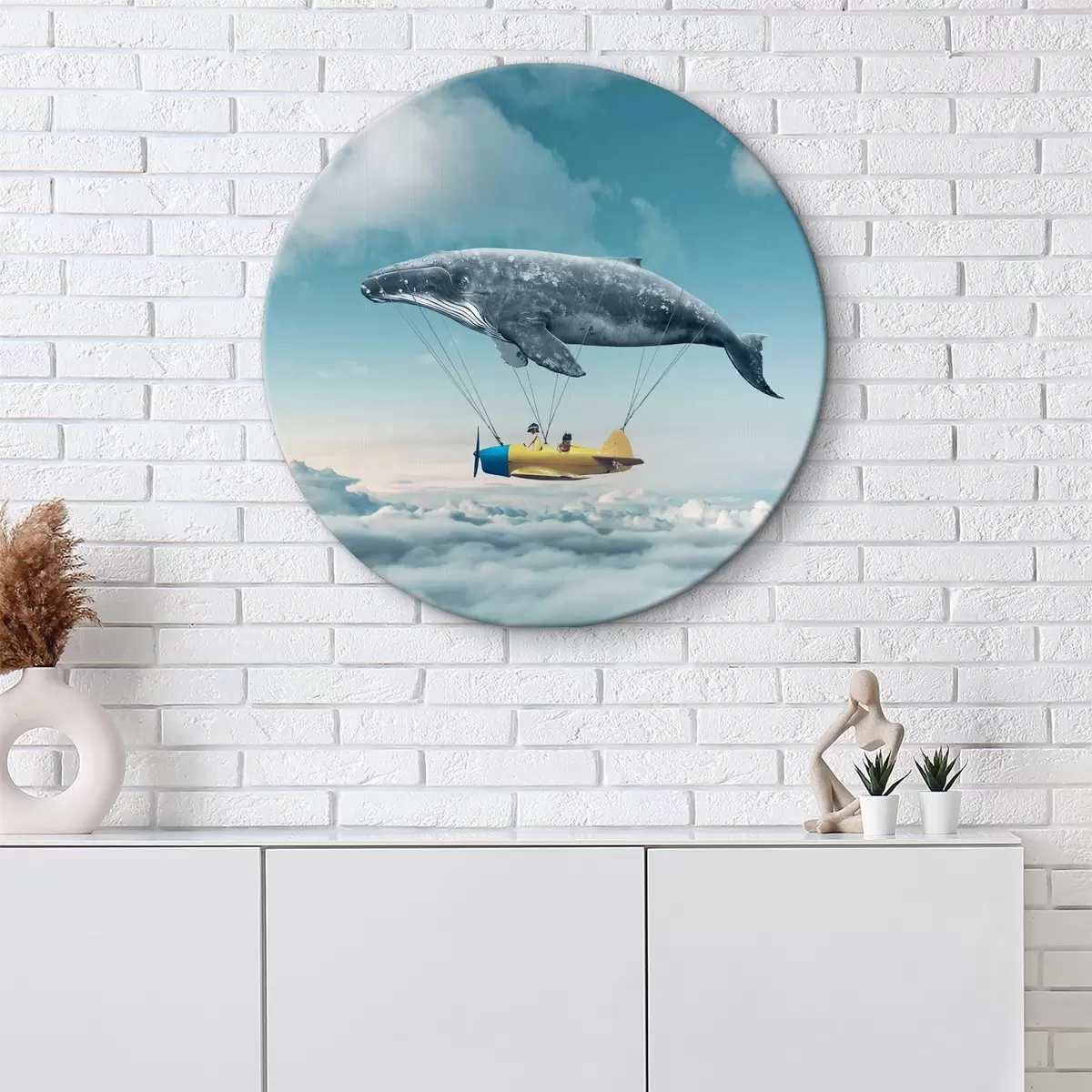Ronde schilderijen Een walvis en een walvis aan een klein vliegtuig Nr r36701