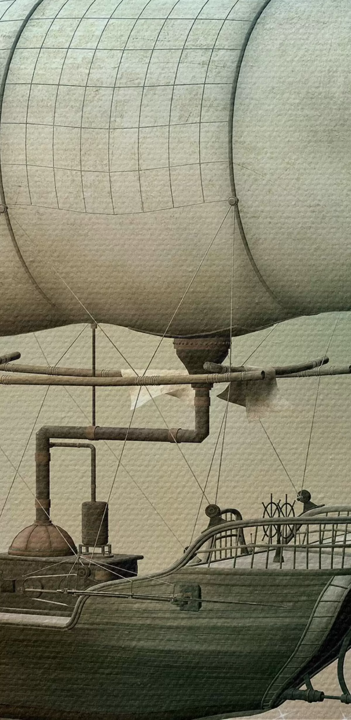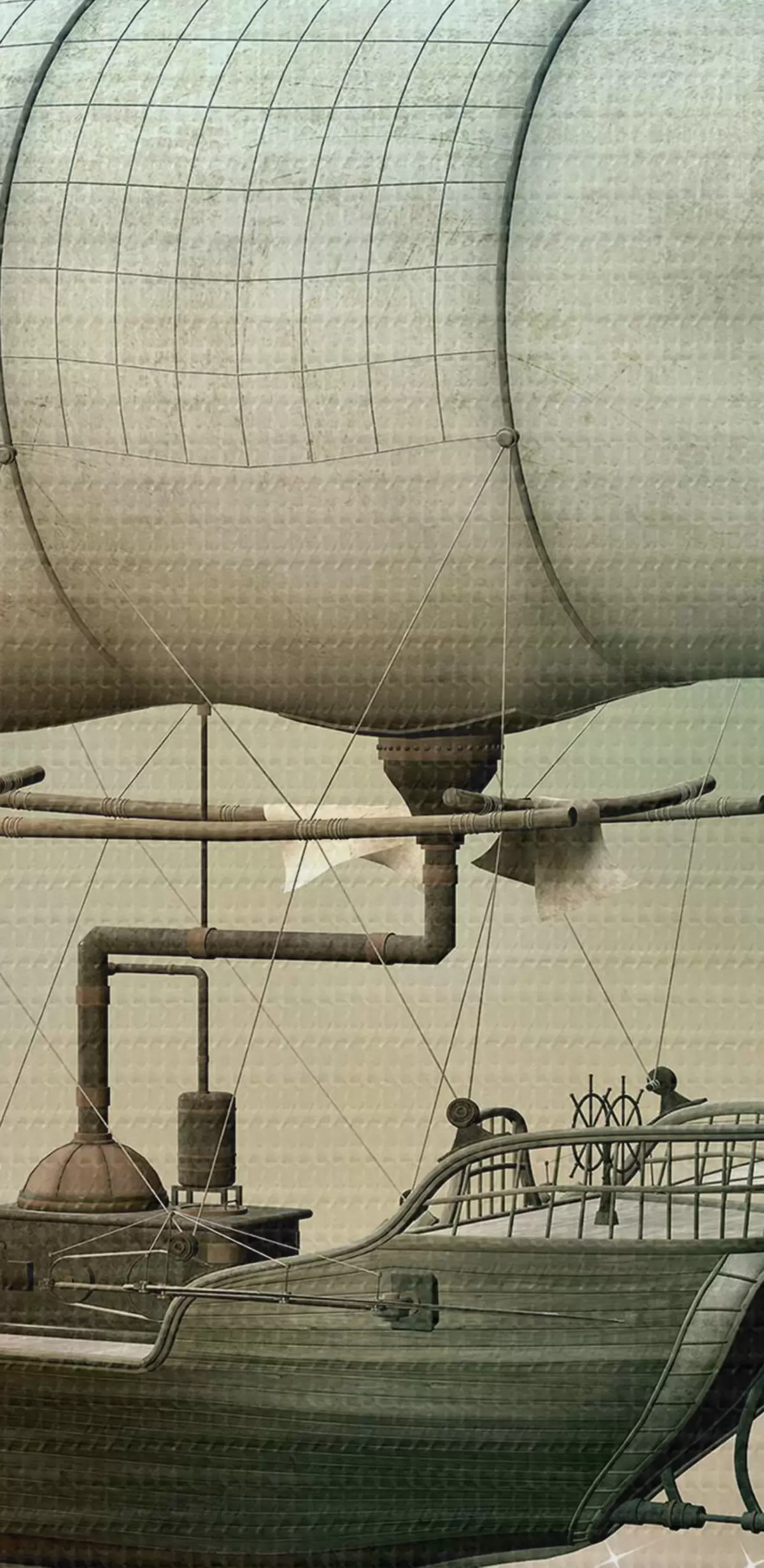 Ronde schilderijen Steampunk luchtschip in de lucht Nr r36706