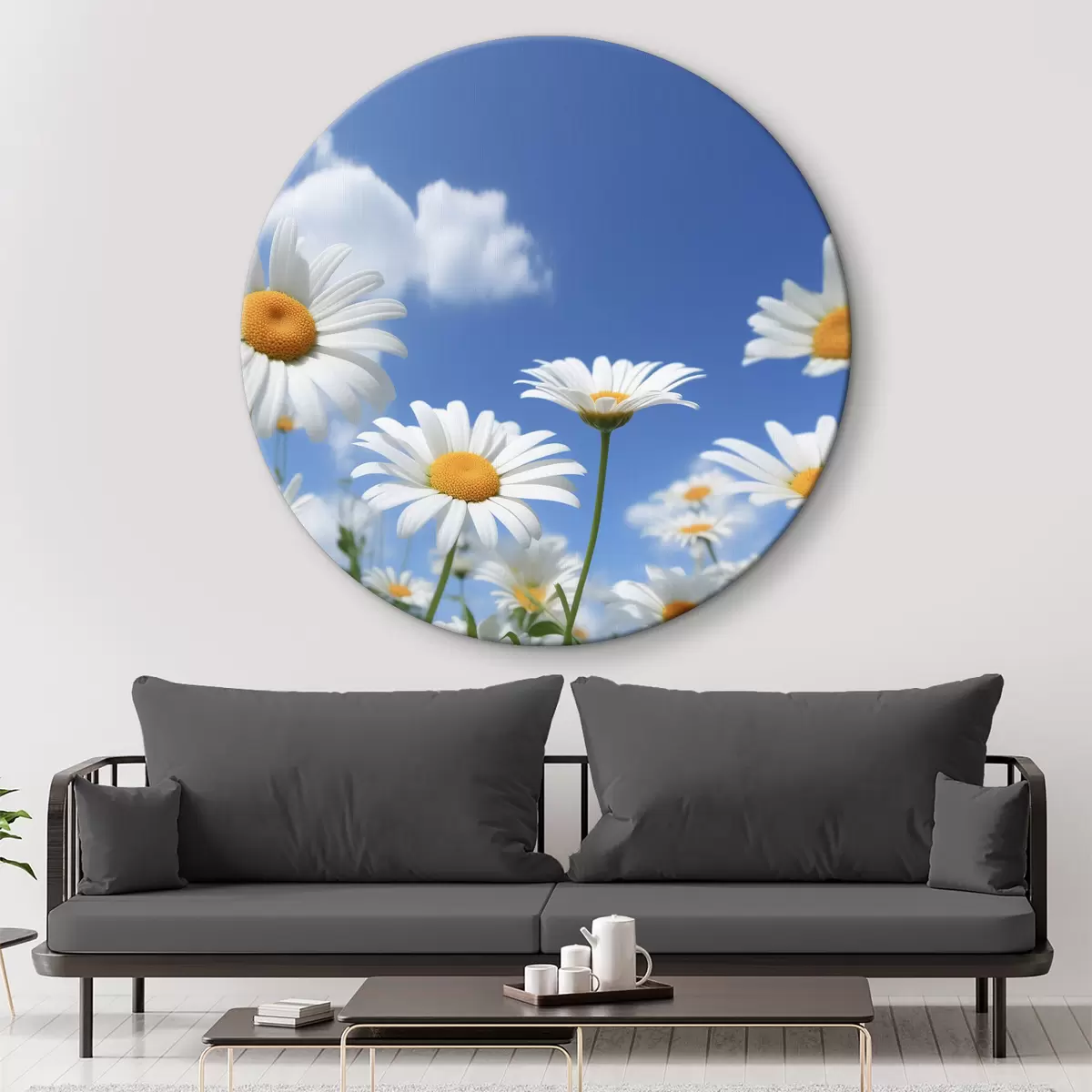 Ronde schilderijen Madeliefjes tegen de blauwe lucht Nr r36802